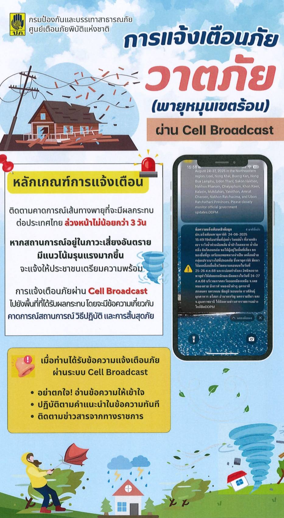 ประชาสัมพันธ์ สร้างการรับรู้และความเข้าใจการใช้งานระบบแจ้งเตือนภัย ผ่านสัญญาณโทรศัพท์เคลื่อนที่ ( Cell Broadcast )