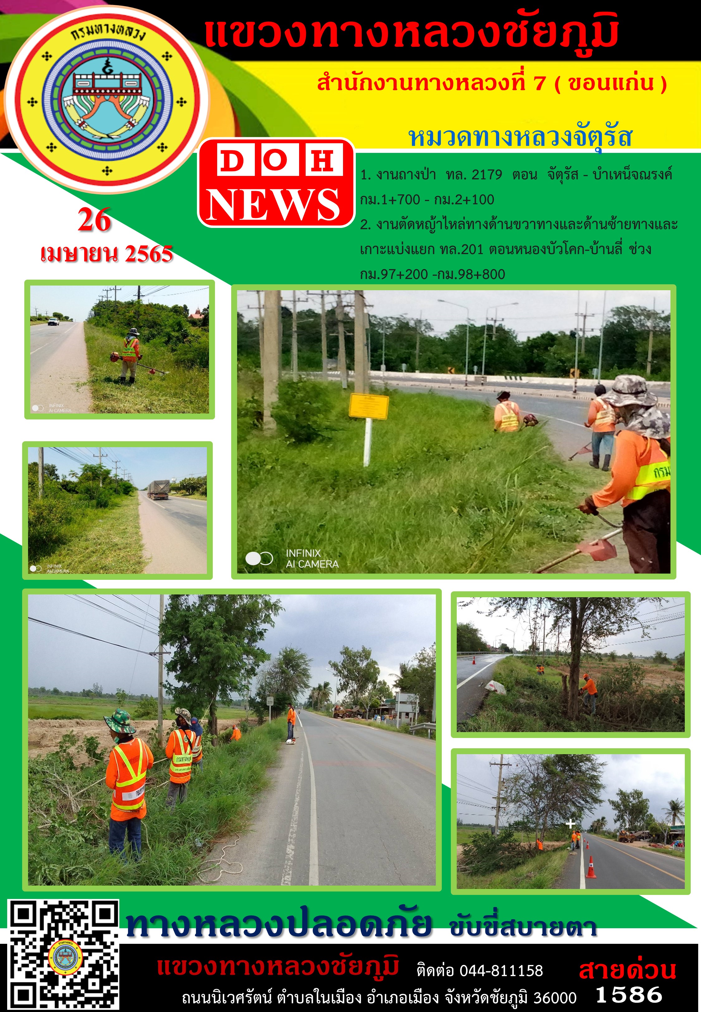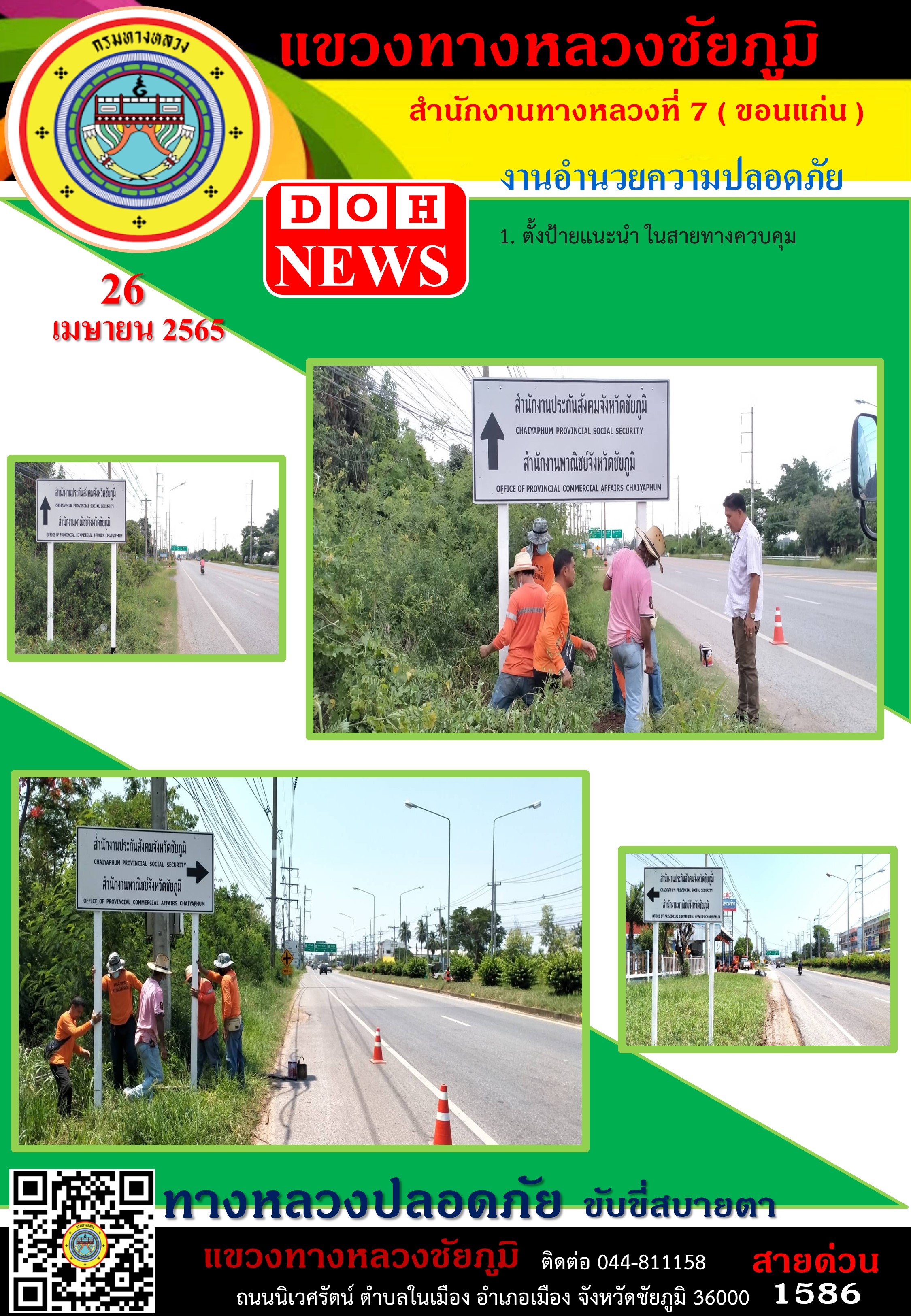 ข้อมูลภาพกิจกรรม : ทางหลวงปลอดภัย ขับขี่สบายตา ประจำวันที่ 26 เม.ย. 2565