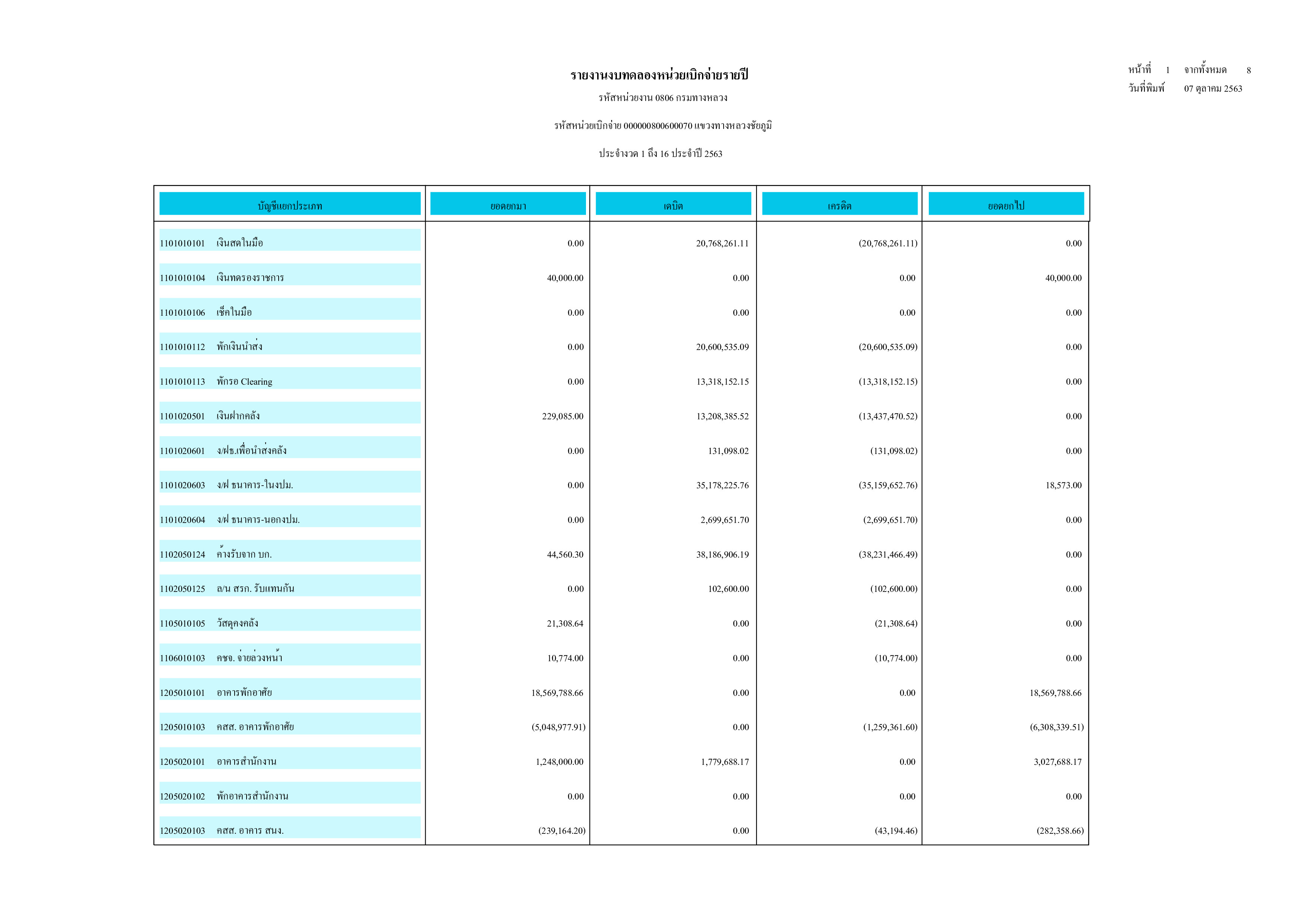 รายงานงบทดลองหน่วยเบิกจ่ายรายปี ประจำปี 2563