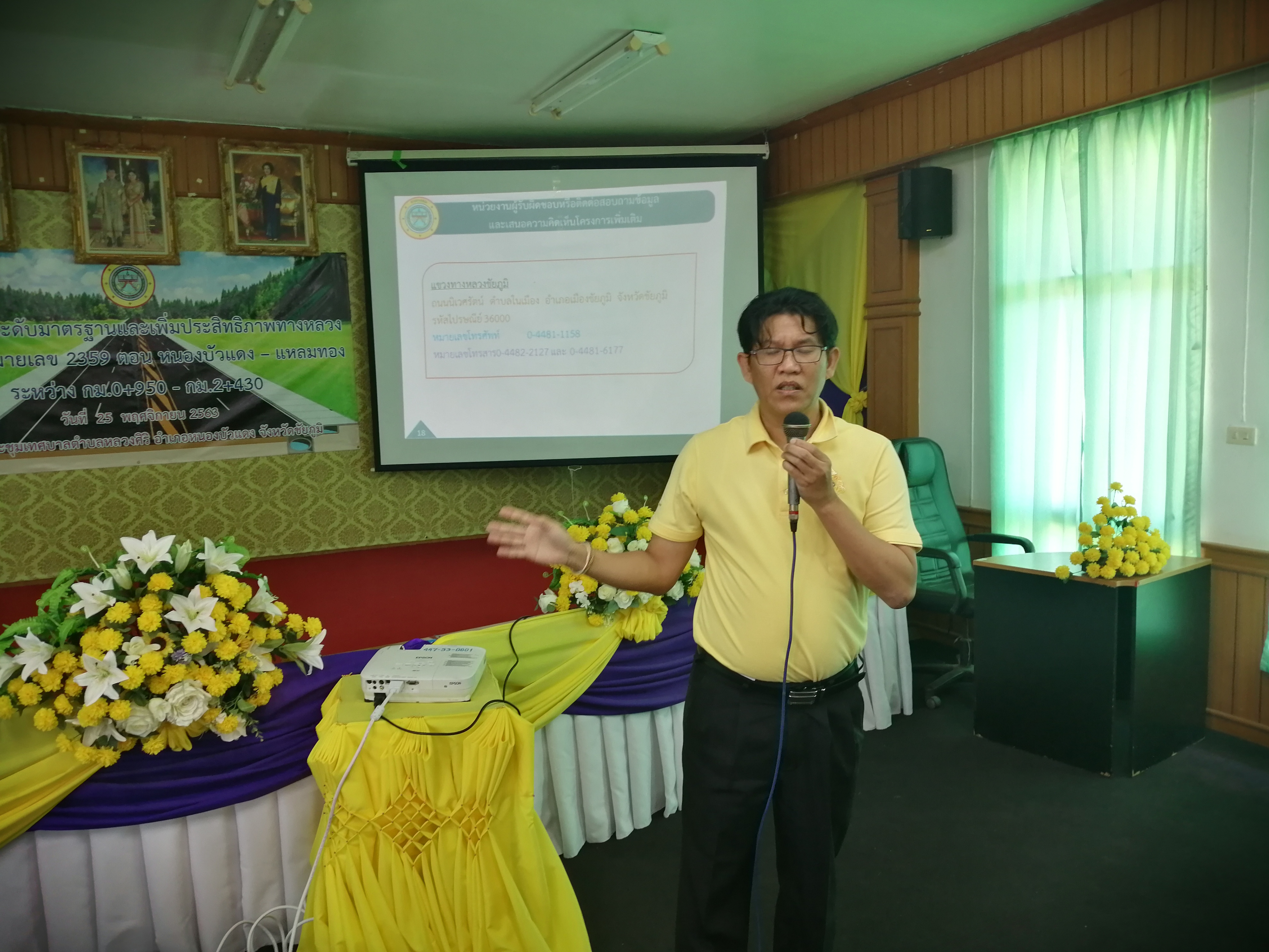 วันที่ 25 พฤศจิกายน 2563 เวลา 09.30 น. นายวันปิยะ ภุมมะภูติ ผู้อำนวยการแขวงทางหลวงชัยภูมิ จัดโครงการการมีส่วนร่วมของประชาชน กิจกรรมยกระดับมาตรฐานและเพิ่มประสิทธิภาพทางหลวง ในทางหลวงหมายเลข 2359 ตอนหนองบัวแดง – แหลมทอง ระหว่าง กม.0+950 – กม.2+430 ในท้องที่ตำบลหลวงศิริ อําเภอหนองบัวแดง ณ ห้องประชุมเทศบาลตำบลหลวงศิริ ตำบลหลวงศิริ อำเภอหนองบัวแดง ในการนี้ได้รับเกียรติจากนายสาคร เถินมงคล นายอำเภอหนองบัวแดง เป็นประธานในที่ประชุม