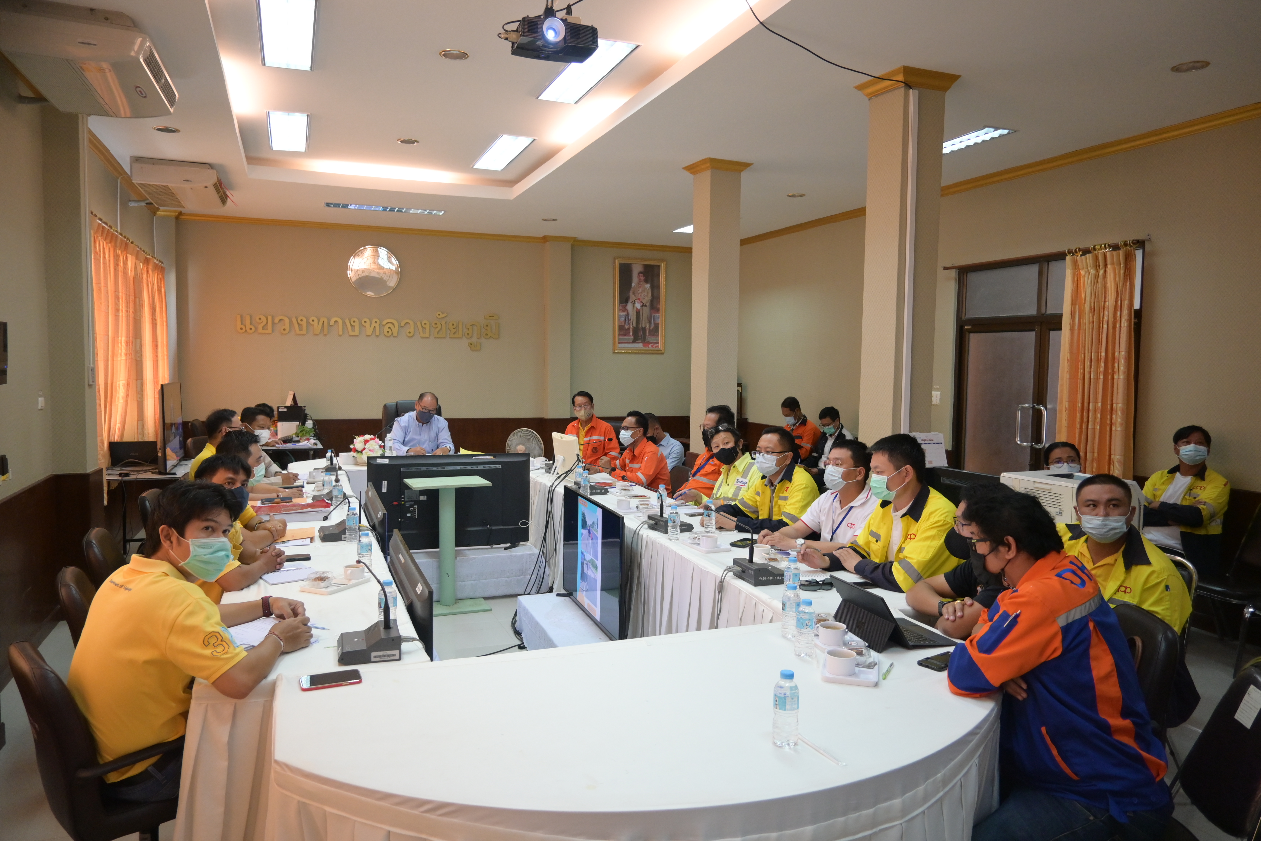 วันที่ 31 พฤษภาคม 2564 เวลาประมาณ 10.00 น. นายจักรกฤษณ์ บุญเรืองศรี ผู้อำนวยการแขวงทางหลวงชัยภูมิได้เชิญผู้แทนและเจ้าหน้าที่บริษัทก่อสร้างวางท่อน้ำมัน ในเขตทางหลวงหมายเลข 201 พื้นที่ความรับผิดชอบของแขวงทางหลวงชัยภูมิ เข้าร่วมประชุม ณ ห้องประชุมพญาแล แขวงทางหลวงชัยภูมิ เพื่อรับทราบเกี่ยวกับรูปแบบการวางแผนดำเนินงาน แนวทางการแก้ไขปัญหา ในการซ่อมแซมผิวทาง ไหล่ทาง ตลอดจนอุปกรณ์อำนวยความปลอดภัยต่างๆ ที่ชำรุดเสียหายจากการก่อสร้างวางท่อน้ำมัน ซึ่งบริษัทก่อสร้างวางท่อน้ำมัน รับทราบพร้อมยินดีปฏิบัติตามนโยบายและเงื่อนไขต่างๆ ตามที่ผู้อำนวยการแขวงทางหลวงชัยภูมิกำหนด เพื่อความสะดวกปลอดภัยต่อผู้ใช้ทางหลวง โดยมีรองผู้อำนวยการฝ่ายปฏิบัติการ หัวหน้าหมวดทางหลวงจัตุรัส หัวหน้าหมวดทางหลวงละหาน และหัวหน้าหมวดทางหลวงชัยภูมิ เข้าร่วมประชุมในครั้งนี้ด้วย
