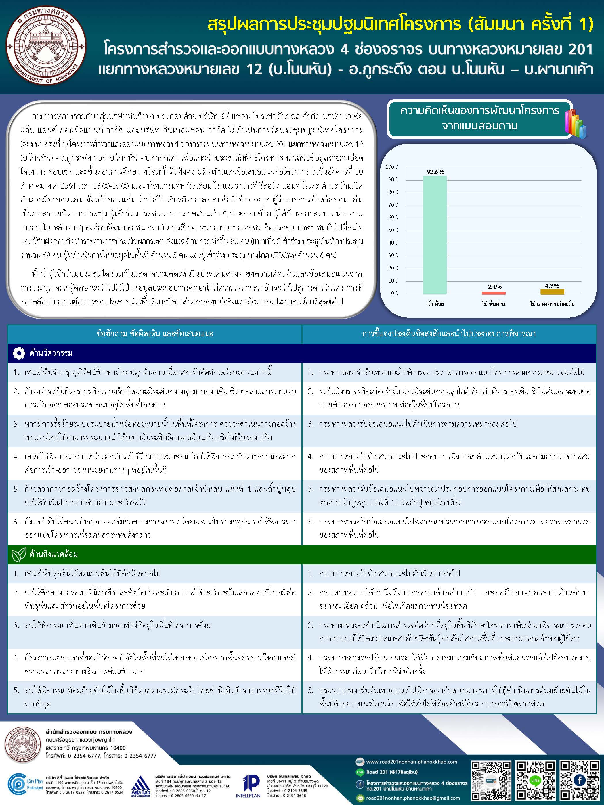 สำนักงานทางหลวงที่ ๗ (ขอนแก่น) ขอประชาสัมพันธ์เรื่อง การประชุมปฐมนิเทศโครงการ (สัมมนา ครั้งที่ ๑) โครงการสำรวจและออกแบบทางหลวง ๔ ช่องจราจร บนทางหลวงหมายเลข ๒๐๑ แยกทางหลวงหมายเลข ๑๒ (บ.โนนหัน) - อ.ภูกระดึง ตอน บ.โนนหัน - บ.ผานกเค้า