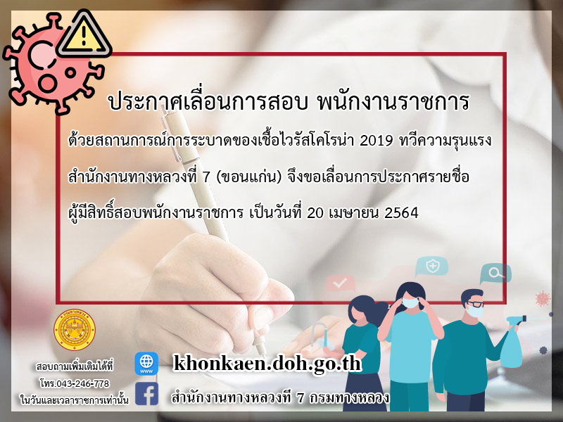 เลื่อนการสอบพนักงานราชการ เนื่องจากสถานการณ์ covid 19