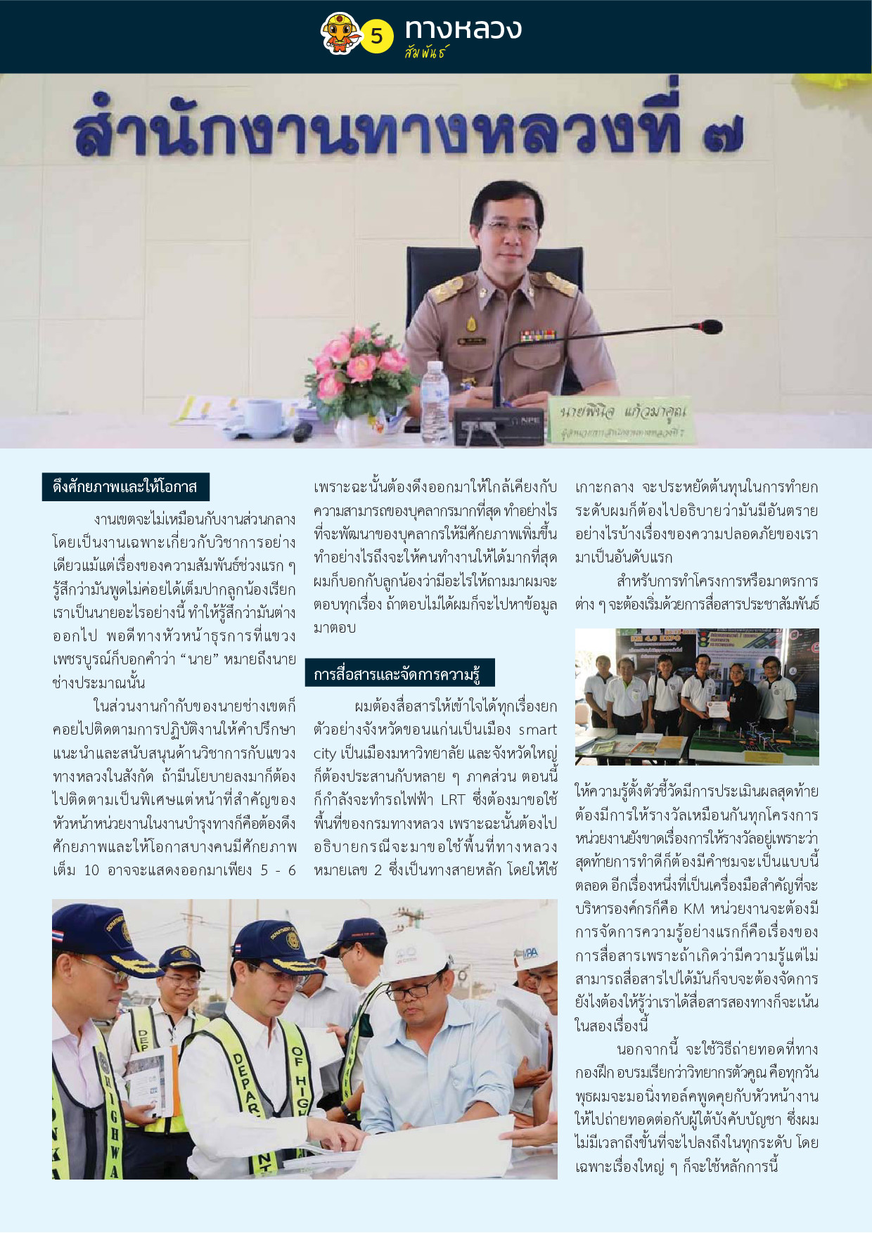 วารสารทางหลวงสัมพันธ์ ฉบับที่ 9/2562 ประจำเดือน มิถุนายน 2562 ในการสัมภาษณ์ นายพินิจ แก้วมาคูณ ผู้อำนวยการสำนักงานทางหลวงที่ 7 (ขอนแก่น)