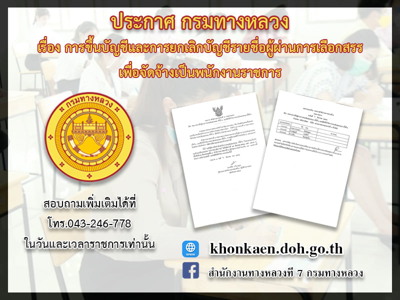 ตามที่ได้มีประกาศกรมทางหลวง ลงวันที่ ๑๙ ตุลาคม ๒๕๖๔ เรื่อง รับสมัครบุคคลเพื่อเลือกสรร