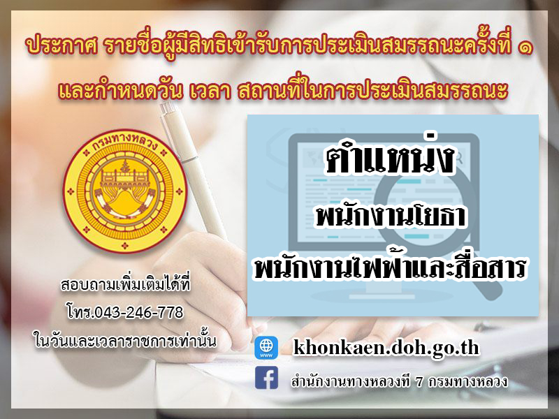ผู้มีสิทธิเข้ารับการประเมินสมรรถนะครั้งที่ ๑ และกำหนดวัน เวลา สถานที่ในการประเมินสมรรถนะ