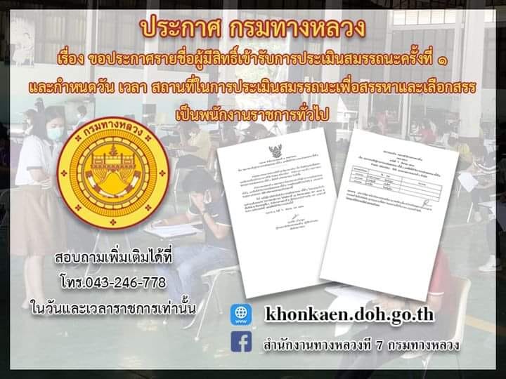 และกำหนดวัน เวลา สถานที่ในการประเมินสมรรถนะเพื่อสรรหาและเลือกสรรเป็นพนักงานราชการทั่วไป
