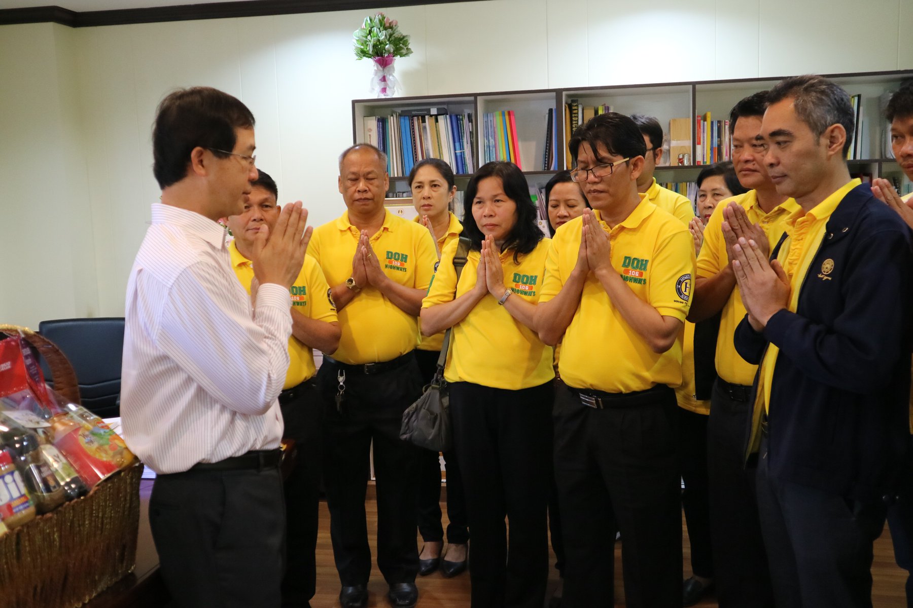 เข้ามอบกระเช้า และสวัสดีปีใหม่ ขอพร จากนายพินิจ แก้วมาคูณ ผู้อำนวยการสำนักงานทางหลวงที่ 7 (ขอนแก่น)