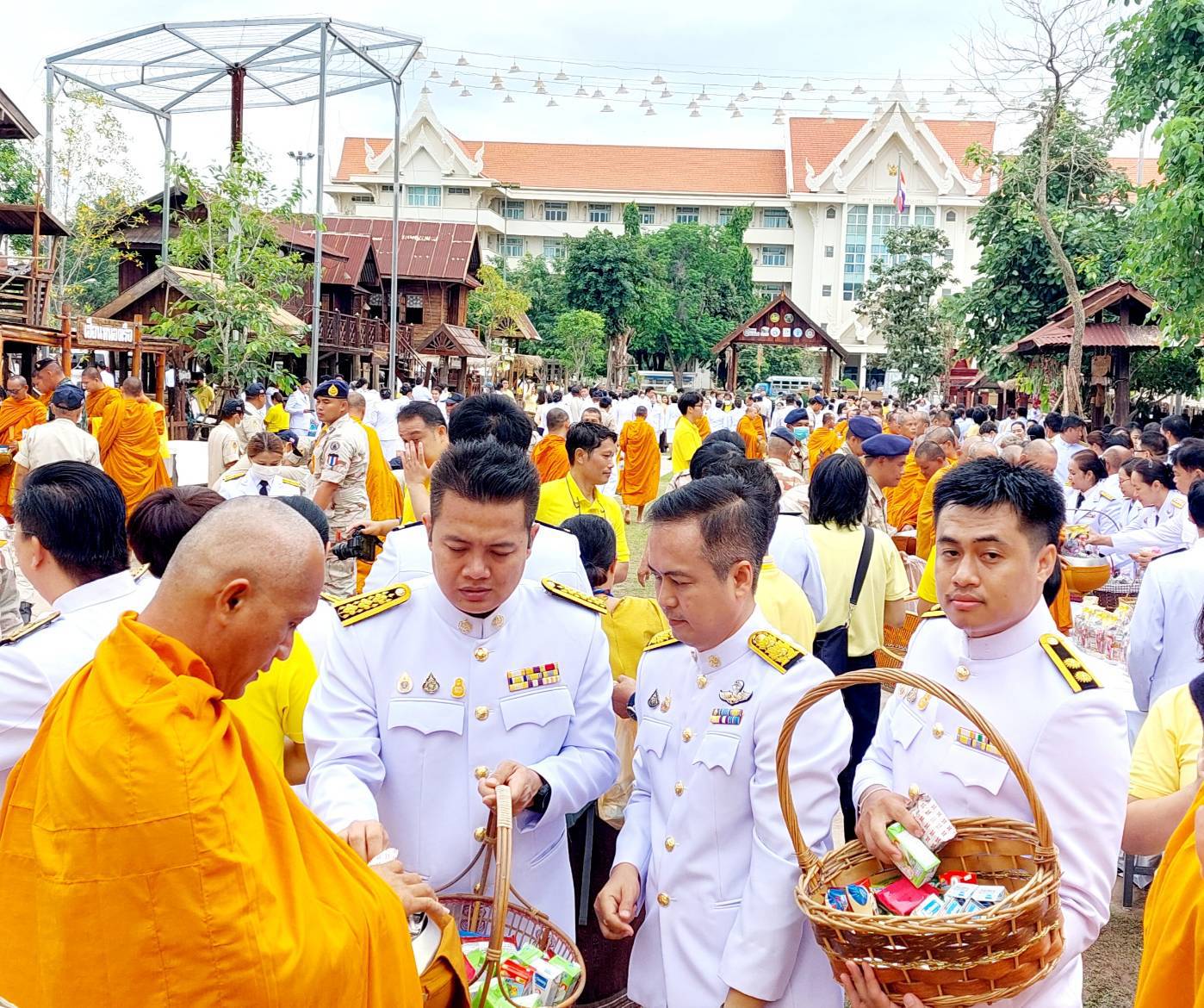 เวลา 08.35 น. ร่วมพิธีทำบุญตักบาตรถวายพระราชกุศล