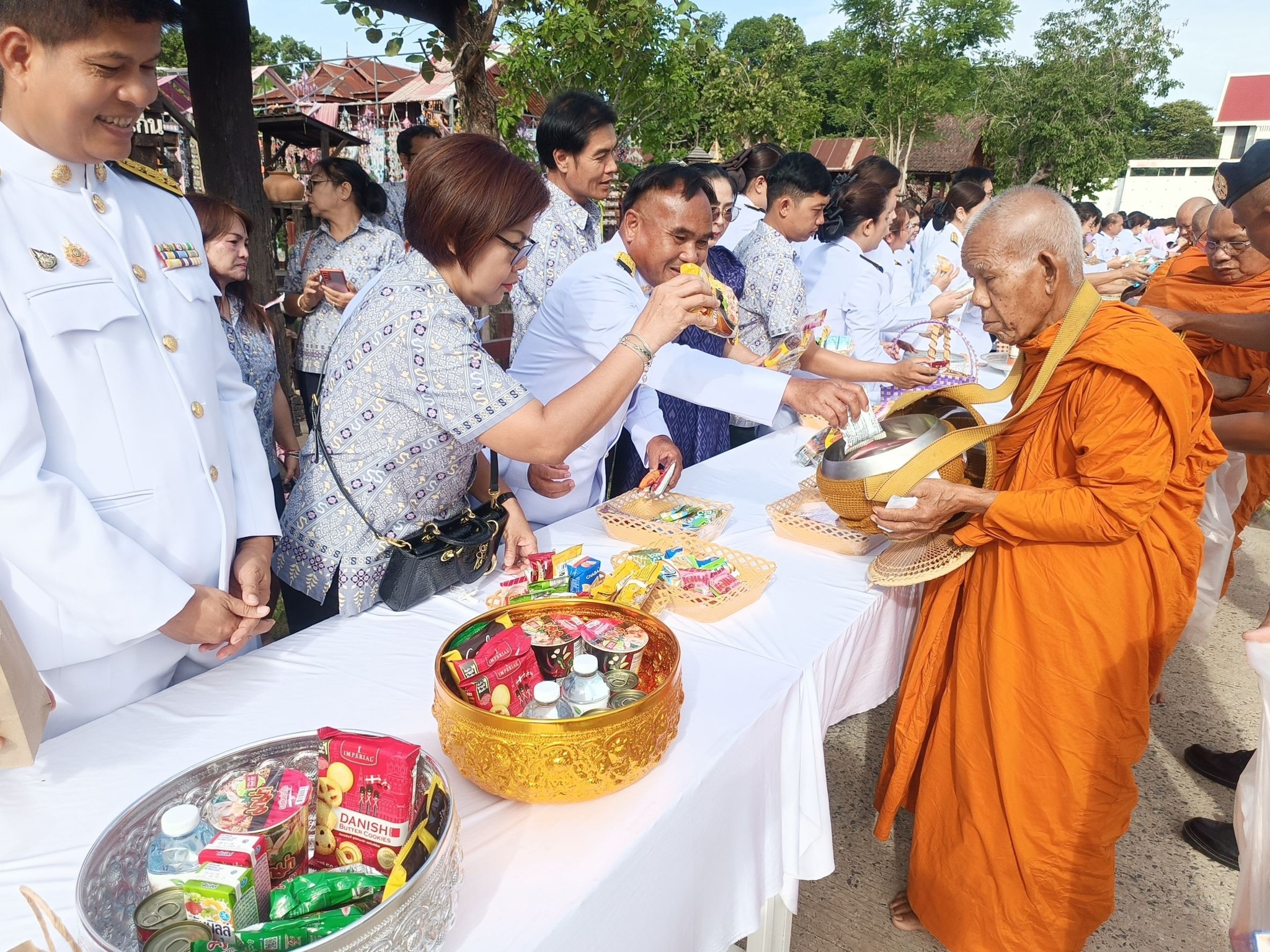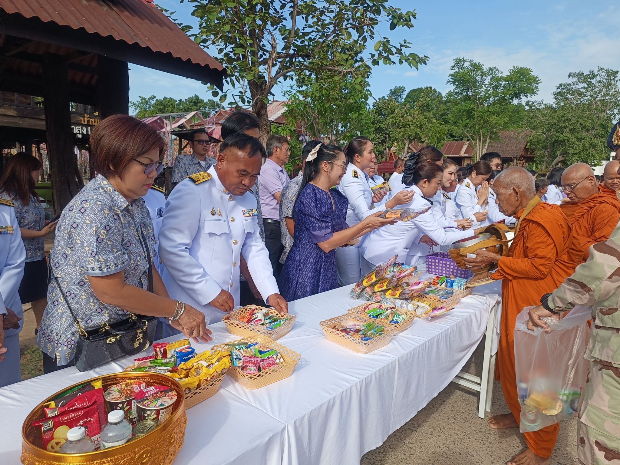 โดยได้ร่วมพิธีทำบุญตักบาตรถวายพระราชกุศล ในเวลา 07.00 น.