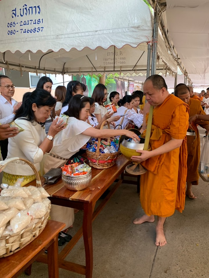 ร่วมพิธีทำบุญตักบาตร พระสงฆ์จำนวน 99 รูป โครงการบรรพชา อุปสมบทเฉลิมพระเกียรติ พระบาทสมเด็จพระเจ้าอยู่หัว เนื่องในโอกาสมหามงคลพระราชพิธีบรมราชาภิเษก พุทธศักราช 2562