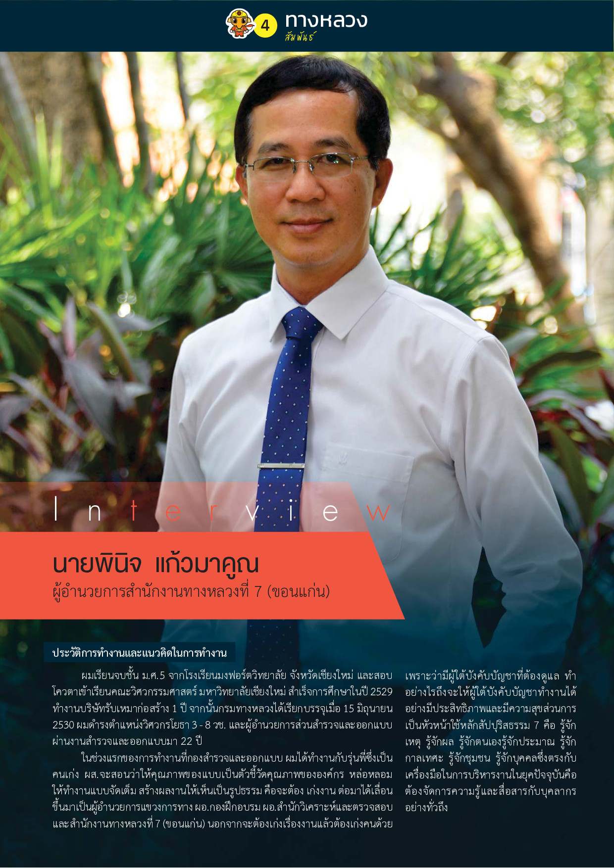 ในการสัมภาษณ์ นายพินิจ แก้วมาคูณ ผู้อำนวยการสำนักงานทางหลวงที่ 7 (ขอนแก่น)