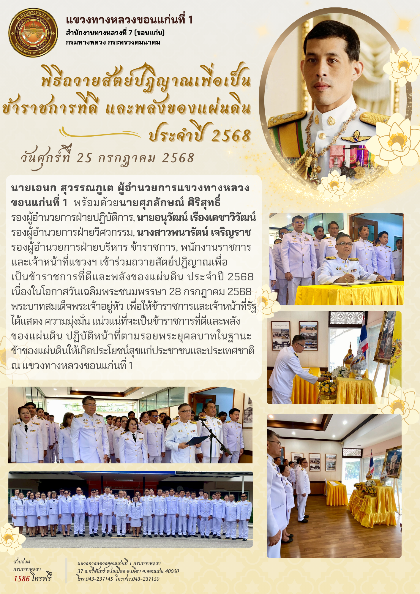 พิธีถวายสัตย์ปฏิญาณเพื่อเป็นข้าราชการที่ดีและพลังของแผ่นดิน เนื่องในโอกาสวันเฉลิมพระชนมพรรษา พระบาทสมเด็จพระเจ้าอยู่หัว 28 กรกฎาคม 2568