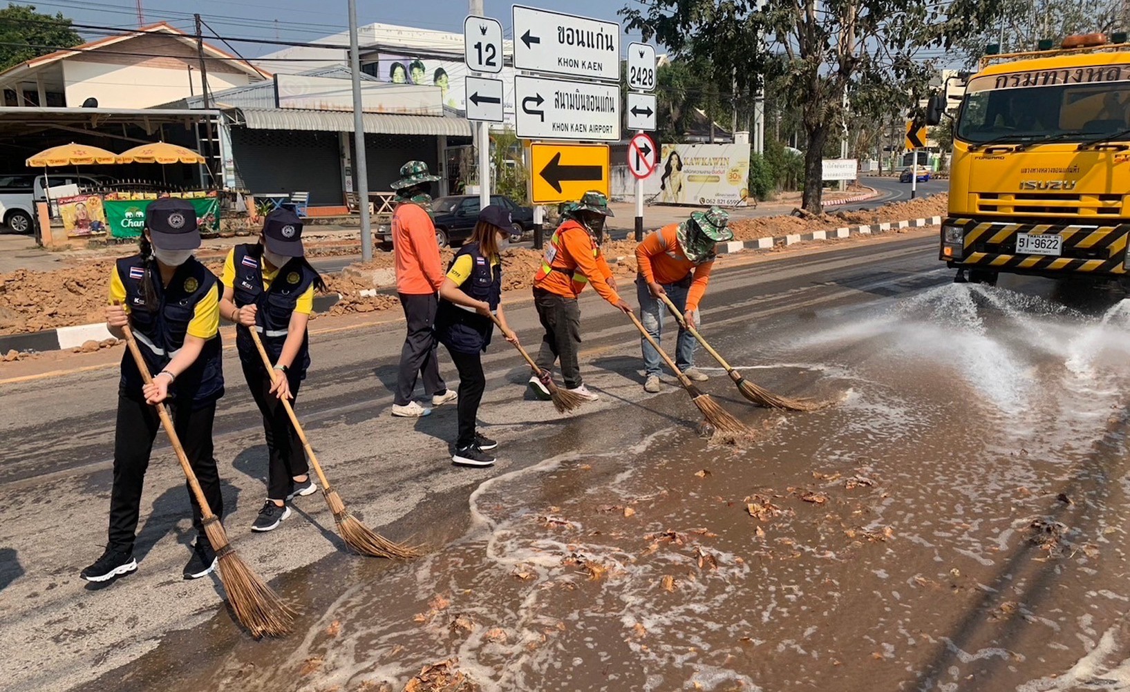 วัน ศุกร์ ที่ 3 มีนาคม 2566 นายสิโรตม์ แดงภูมี ผู้อำนวยการแขวงทางหลวงขอนแก่นที่ 1 มอบหมายให้นายมังกร กัลยา รองผู้อำนวยการฝ่ายปฏิบัติการ และนางสาวพนารัตน์ เจริญราช รองผู้อำนวยการฝ่ายบริหาร พร้อมด้วยเจ้าหน้าที่แขวงทางหลวงขอนแก่นที่ 1 ท่าอากาศยาน จังหวัดขอนแก่น และโรงแรมราชาวดี ร่วมกันจัดกิจกรรมล้างและทำความสะอาดถนนในเขตทางหลวงหมายเลข 2428 ตอน ทางเข้าท่าอากาศยานขอนแก่น ระหว่าง กม.1+000–กม.1+741 ตามนโยบายของรัฐบาล และผู้ว่าราชการจังหวัดขอนแก่น เพื่อลดปริมาณฝุ่นละอองขนาดเล็ก PM 2.5 ในเขตพื้นที่อำเภอเมือง จังหวัดขอนแก่น