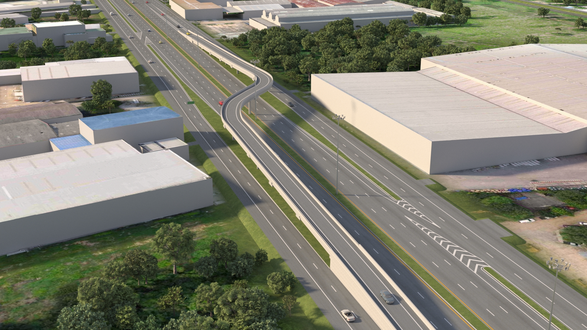- การดำเนินการก่อสร้างบนทางหลวงหมายเลข 230 จุดเริ่มต้นก่อสร้างบริเวณ กม.0+000 หรือบริเวณ กม.1+750 ของทางหลวงหมายเลข 230 และจุดสิ้นสุดการปรับปรุงบริเวณ กม.2+848 หรือ กม.47+400 ของทางหลวงหมายเลข 230 รวมระยะทางการปรับปรุงถนนโครงการประมาณ 2,848 เมตร โดยปรับปรุงขยายช่องจราจรที่อยู่ในแนวเส้นทางเดิมให้มีช่องทางหลักและช่องทางขนาน กล่าวคือ ออกแบบให้มีช่องหลัก ขนาด 6 ช่องจราจร (3 ช่องจราจรต่อทิศทาง) ความกว้างช่องจราจรละ 3.50 เมตร แบ่งทิศทางการจราจรด้วยเกาะแบบยก (Raised Median) กว้าง 5.10 เมตร ไหล่ทางด้านนอกกว้าง 2.50 เมตร สำหรับทางคู่ขนานฝั่งละ 2 ช่องจราจร ความกว้างช่องจราจรละ 3.50 เมตร ไหล่ทางด้านในกว้าง 1.50 เมตร ไหล่ทางด้านนอกกว้าง 2.50 เมตร มีทางเท้าพร้อมกับระบบสาธารณูปโภคขนาด 3.60 เมตร รวมทั้ง เกาะกลางระหว่างทางหลักและทางคู่ขนานแบบร่องน้ำกว้าง 8.50 เมตร