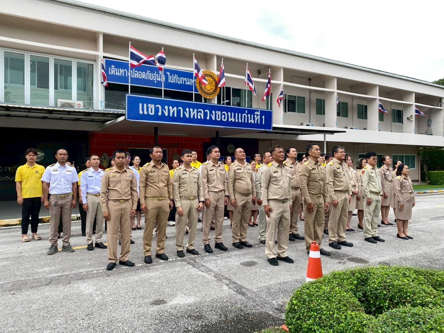 แขวงทางหลวงขอนแก่นที่ 1 ได้จัดกิจกรรม “วันพระราชทานธงชาติไทย (Thai National Flag Day)” ประจำปี 2568 โดยมีนายศุภลักษณ์ ศิริสุทธิ์ รองผู้อำนวยการฝ่ายปฏิบัติการ, นายอนุวัฒน์ เรืองเดชาวิวัฒน์ รองผู้อำนวยการฝ่ายวิศวกรรม, นางสาวพนารัตน์ เจริญราช รองผู้อำนวยการฝ่ายบริหาร พร้อมด้วยเหล่าข้าราชการ พนักงานราชการ และเจ้าหน้าที่ในสังกัด เข้าร่วมกิจกรรมฯ และร้องเพลงชาติไทย ณ สำนักงานแขวงทางหลวงขอนแก่นที่ 1