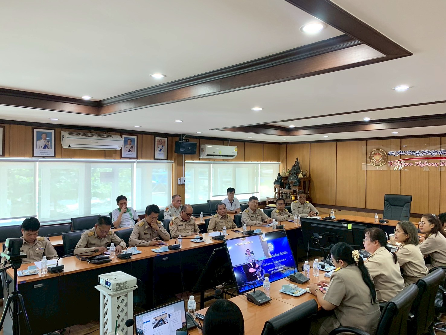 นายปิยพงษ์ จิวัฒนกุลไพศาล อธิบดีกรมทางหลวง มอบนโยบายการบริหารงานให้กับข้าราชการและเจ้าหน้าที่กรมทางหลวงผ่านระบบ Zoom Cloud Meeting ห้องประชุมมนัส คอวนิช กรมทางหลวงมายังส่วนภูมิภาค โดยมีนายศุภลักษณ์ ศิริสุทธิ์ รองผู้อำนวยการฝ่ายปฏิบัติการ, นางสาวพนารัตน์ เจริญราช รองผู้อำนวยการฝ่ายบริหาร, นายสมศักดิ์ เนาวราช ผู้อำนวยการหมวดทางหลวงอาวุโสศิลา พร้อมด้วยหัวหน้างานในสังกัดเข้าร่วมการประชุมในครั้งนี้ ณ ห้องประชุมแขวงทางหลวงขอนแก่นที่ 1