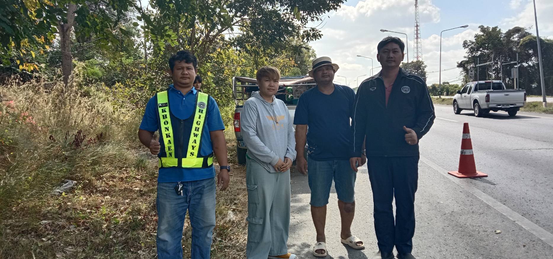 แขวงทางหลวงขอนแก่นที่ 1 โดยหน่วยเคลื่อนที่เร็ว งานปรับซ่อม ให้ความช่วยเหลือประชาชนผู้ใช้เส้นทางบนทางหลวง เวลาประมาณ 11.45 น. ให้ความช่วยเหลือรถยนต์โตโยต้าวีโก้ ทะเบียน ฆท - 3192 กทม. ตรวสอบพบว่า ยางหลังข้างซ้ายรั่ว เวลาประมาณ 14.24 น. ให้ความช่วยเหลือรถยนต์อีซูซุดีแมกซ์ ทะเบียน ตร - 5450 กทม. ตรวสอบพบว่า ยางหลังข้างขวารั่ว เจ้าหน้าที่แขวงฯ จึงได้ดำเนินการติดตั้งอุปกรณ์อำนวยความปลอดภัยและช่วยปะยาง รถทั้ง 2 คัน เพื่อให้ประชาชนสามารถเดินทางต่อไปได้