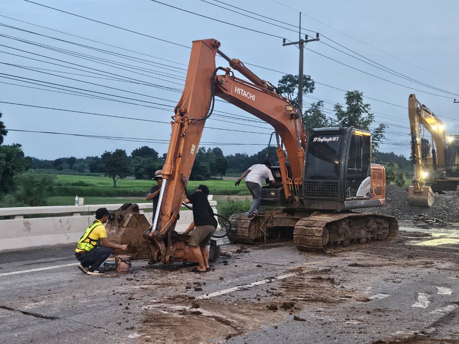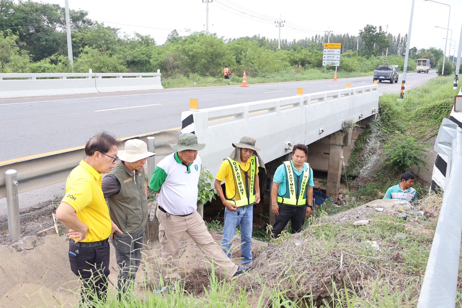 #นายอำนวยพร ศรีอิสรานุสรณ์ ผู้อำนวยการสำนักงานทางหลวงที่ 7 พร้อมด้วย นายสมเจตน์ เขื่อนเพชร ผู้อำนวยการแขวงทางหลวงขอนแก่นที่ 3 (บ้านไผ่) นายพงศ์ยุทธ หินเธาว์ รองผู้อำนวยการ (ฝ่ายวิศวกรรม) นายลือชัน วิจารวงษ์ หัวหน้าหมวดทางหลวงบ้านแฮด และเจ้าหน้าที่ผู้เกี่ยวข้อง ลงพื้นที่ตรวจสอบความเสียหายคอสะพานชำรุด และเร่งดำเนินการซ่อมแซมสะพานทรุดตัวจากการใช้งานและเกิดเหตุซ้ำจากเหตุการณ์ฝนตกหนักต่อเนื่อง ทางหลวงหมายเลข 2 (ถนนมิตรภาพ) ตอน บ้านไผ่ - ท่าพระ ที่ กม.317+350 (ด้านขวาทาง) เพื่อให้ประชาชนสามารถสัญจรได้อย่างปลอดภัยและสะดวกขึ้น โดยทีมงานวิศวกรและเจ้าหน้าที่ที่เกี่ยวข้อง ได้ร่วมกันเร่งดำเนินการซ่อมแซมอย่างเต็มที่ พร้อมทั้งติดตั้งป้ายเตือนและจัดการจราจรเพื่ออำนวยความสะดวกแก่ผู้ใช้เส้นทาง และป้องกันอุบัติเหตุที่อาจเกิดขึ้นในระหว่างการซ่อมแซม นอกจากนี้ยังมีการตรวจสอบและบำรุงรักษาสะพานอื่น ๆ ในพื้นที่ใกล้เคียงเพื่อป้องกันเหตุการณ์เช่นนี้เกิดขึ้นอีกในอนาคต