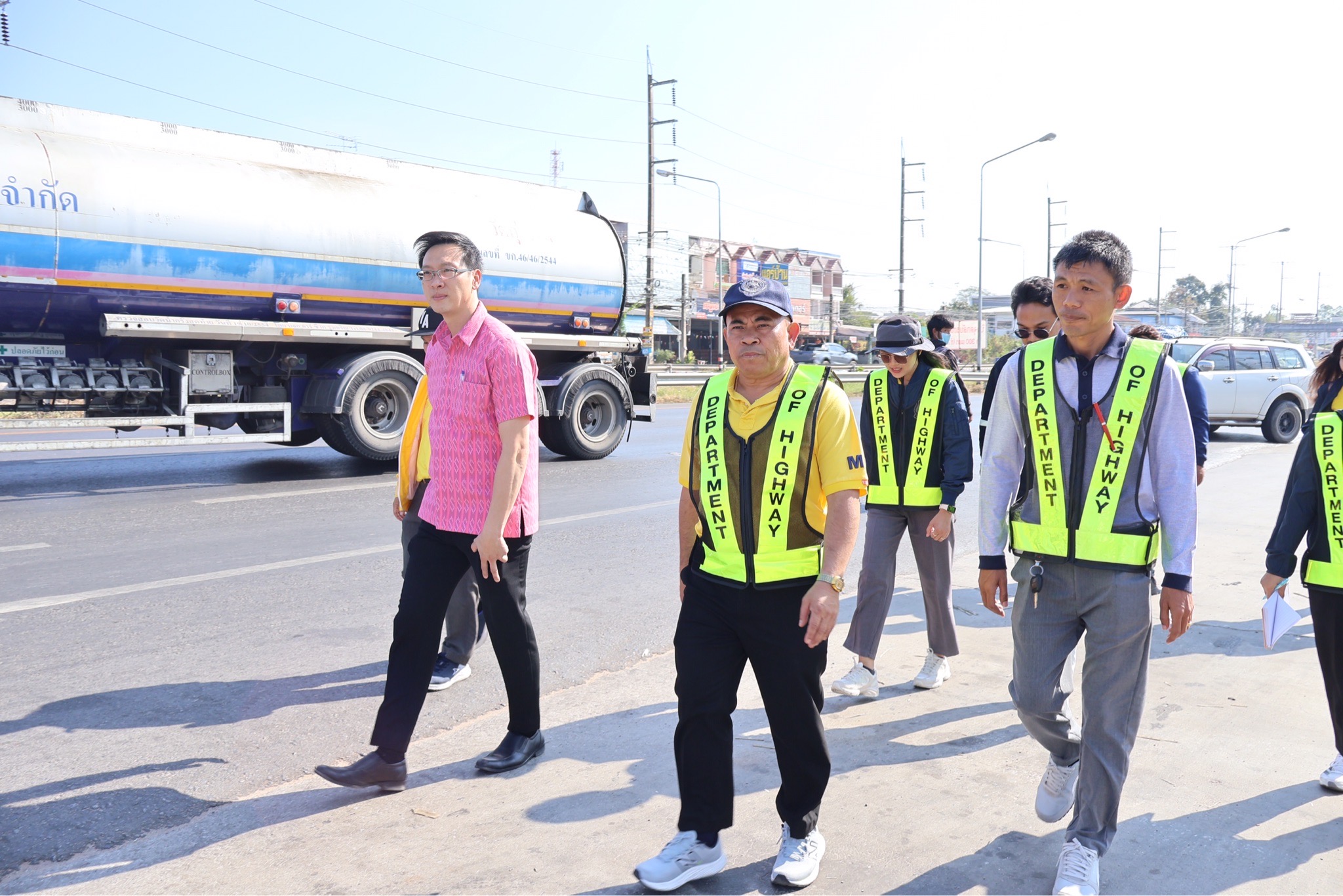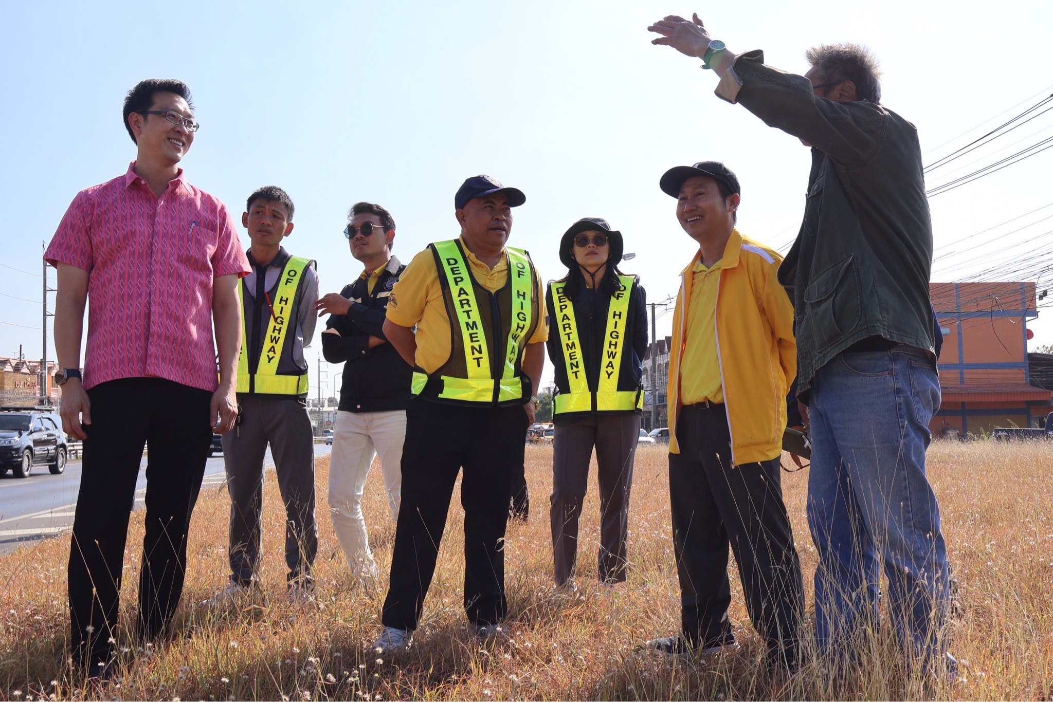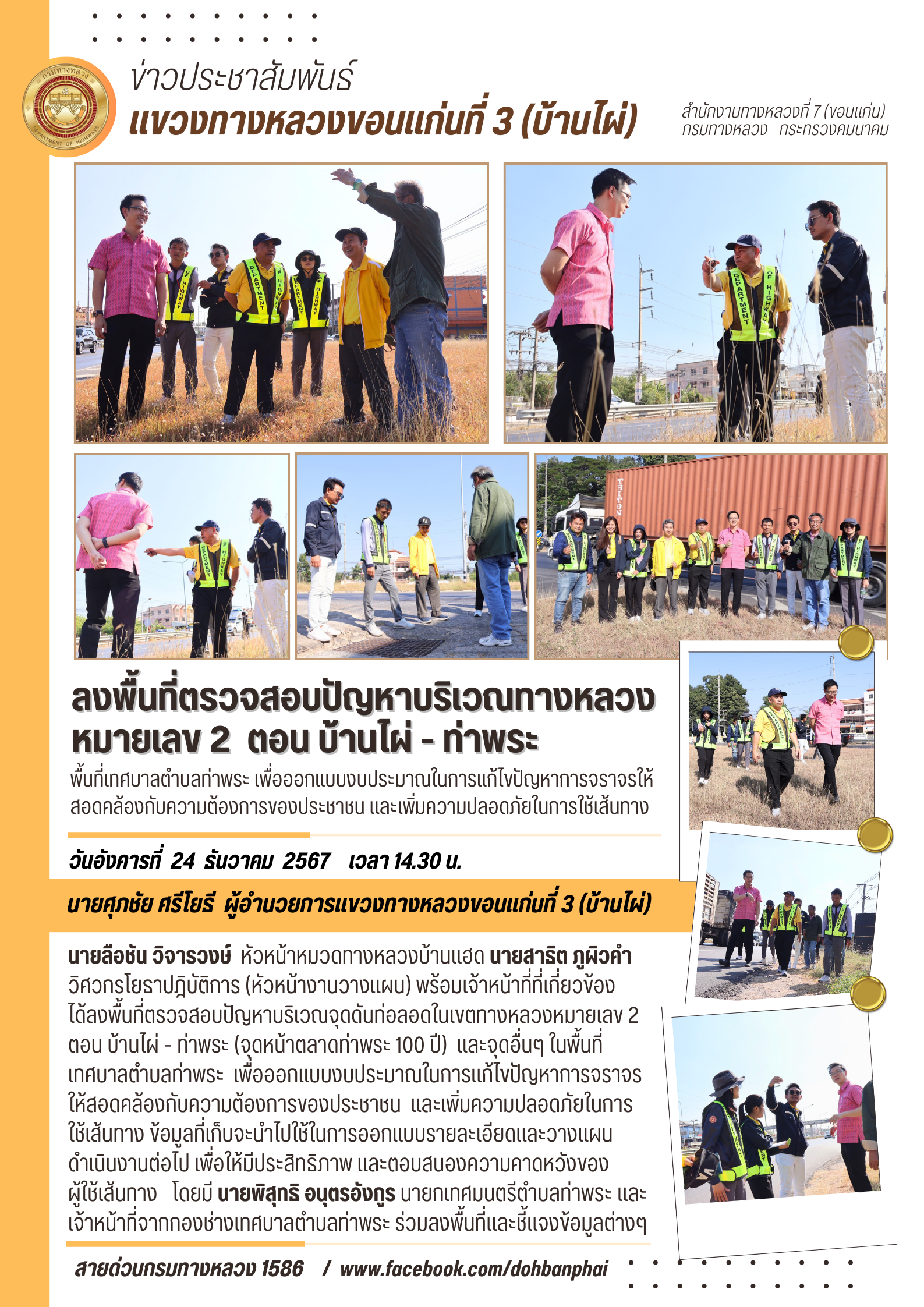 #นายศุภชัย ศรีึโยธี ผู้อำนวยการแขวงทางหลวงขอนแก่นที่ 3 (บ้านไผ่) นายลือชัน วิจารวงษ์ หัวหน้าหมวดทางหลวงบ้านแฮด นายสาธิต ภูผิวคำ วิศวกรโยธาปฎิบัติการ (หัวหน้างานวางแผน) พร้อมเจ้าหน้าที่ที่เกี่ยวข้อง