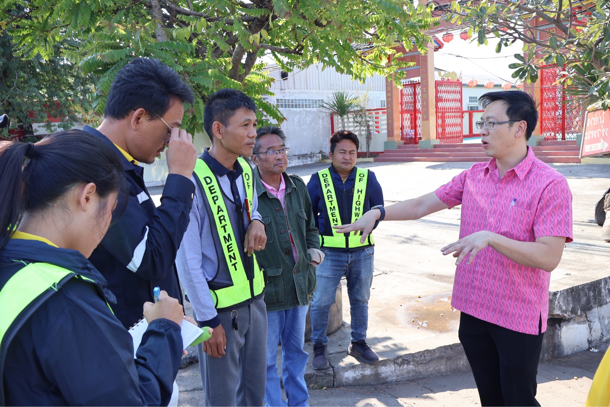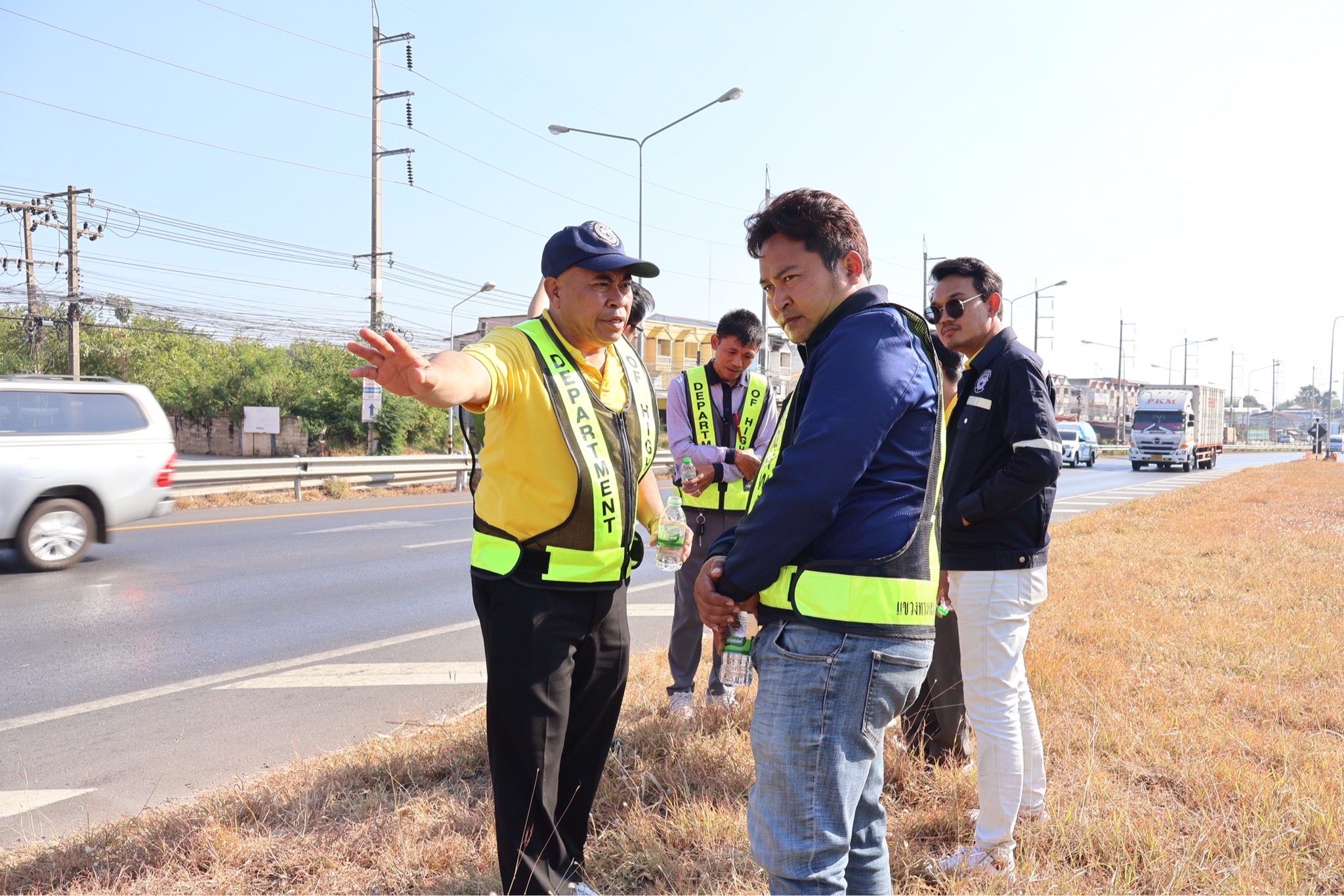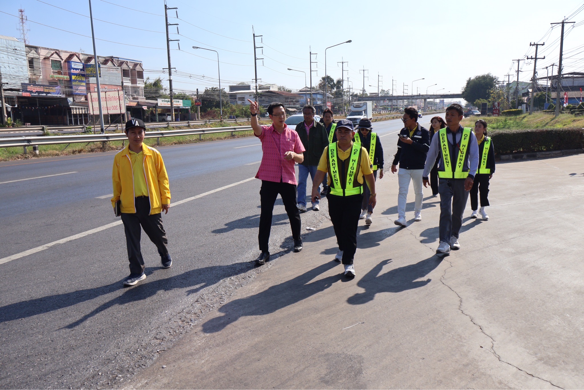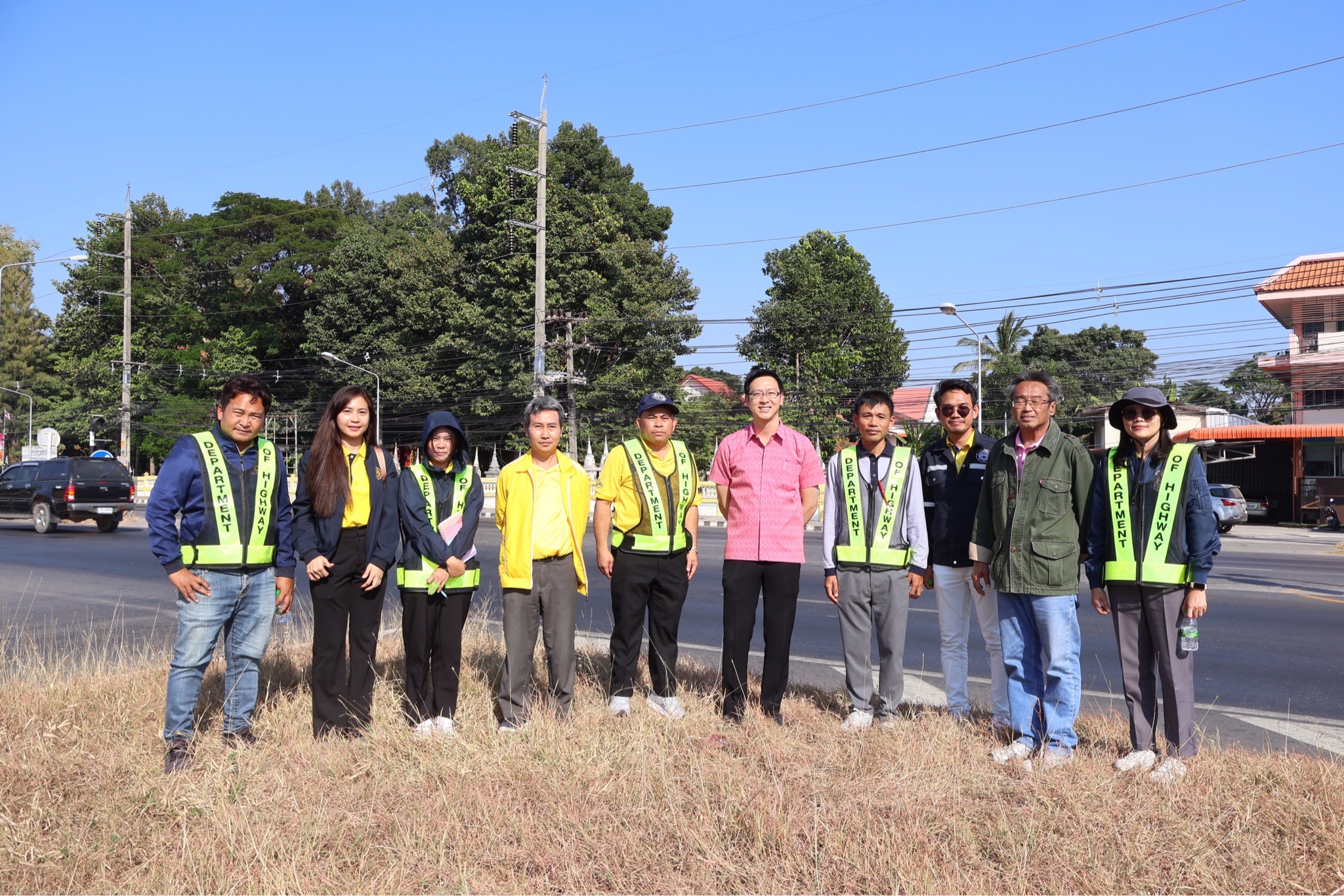 #นายศุภชัย ศรีึโยธี ผู้อำนวยการแขวงทางหลวงขอนแก่นที่ 3 (บ้านไผ่) นายลือชัน วิจารวงษ์ หัวหน้าหมวดทางหลวงบ้านแฮด นายสาธิต ภูผิวคำ วิศวกรโยธาปฎิบัติการ (หัวหน้างานวางแผน) พร้อมเจ้าหน้าที่ที่เกี่ยวข้อง