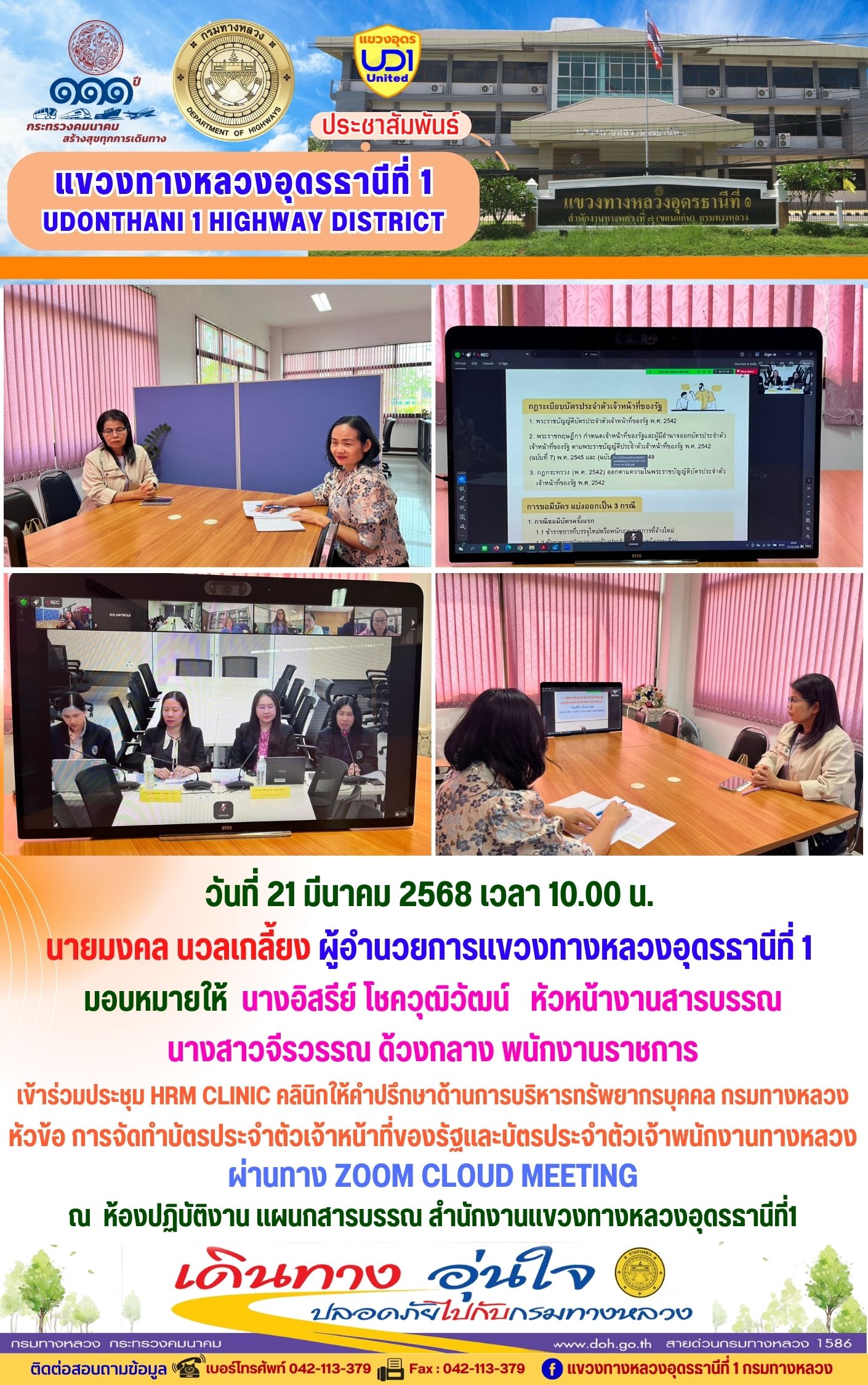 เข้าร่วมประชุม HRM CLINIC คลินิกให้คำปรึกษาด้านการบริหารทรัพยากรบุคคล กรมทางหลวง หัวข้อ การจัดทำบัตรประจำตัวเจ้าหน้าที่ของรัฐและบัตรประจำตัวเจ้าพนักงานทางหลวง