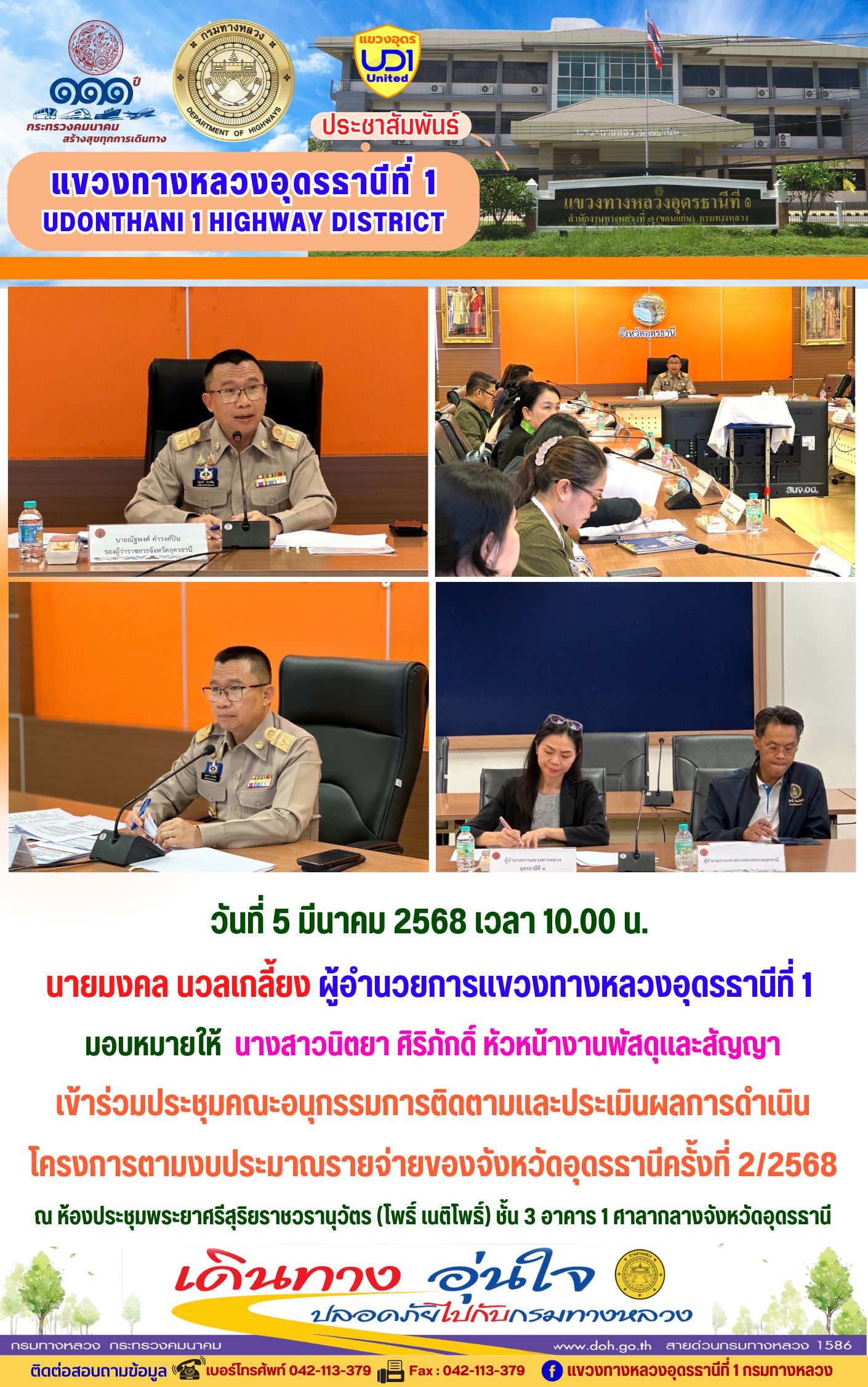 ประชุมคณะอนุกรรมการติดตามและประเมินผลการดำเนินโครงการตามงบประมาณรายจ่ายของจังหวัดอุดรธานีครั้งที่ 2/2568
