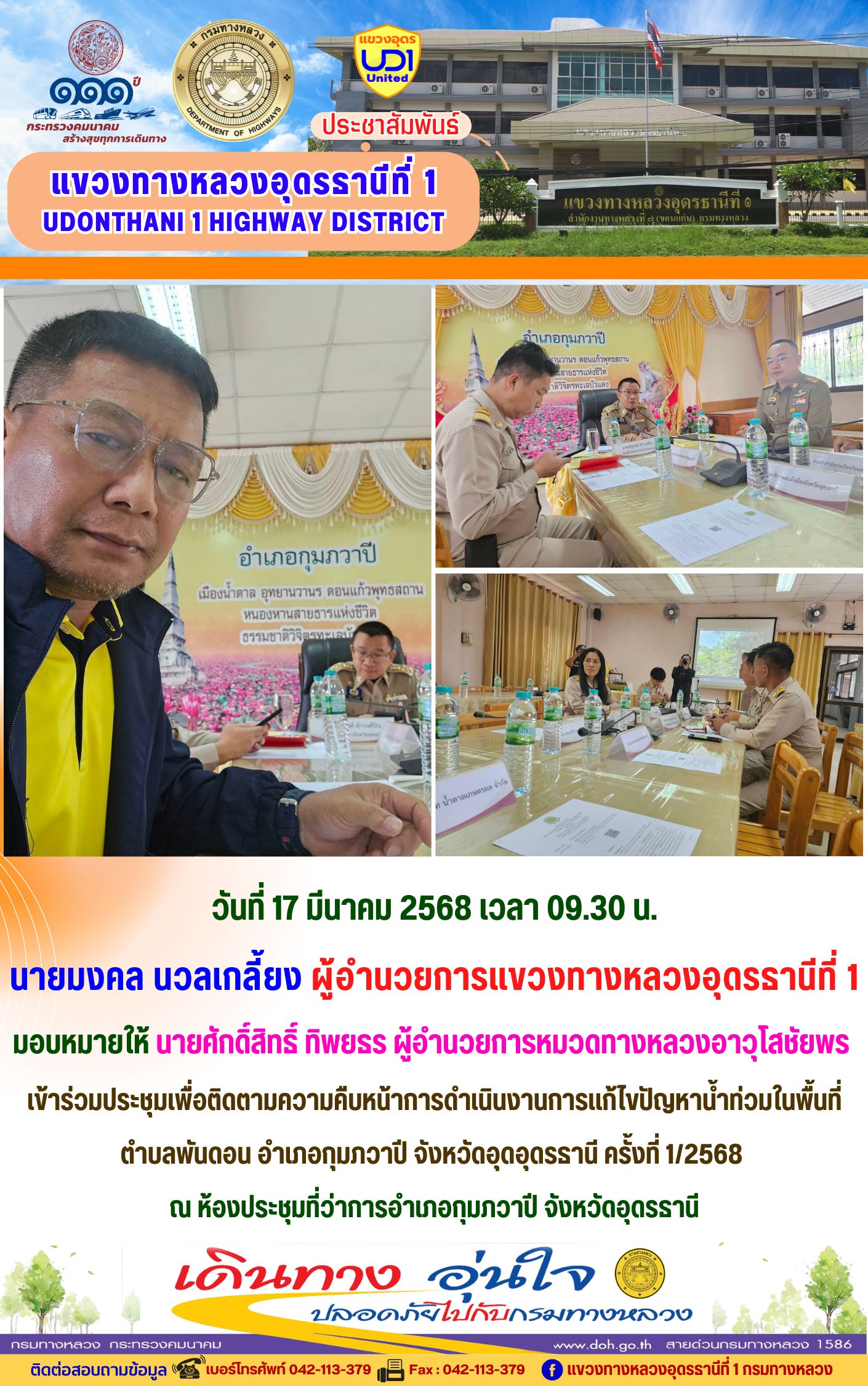 เข้าร่วมประชุมเพื่อติดตามความคืบหน้าการดำเนินงานการแก้ไขปัญหาน้ำท่วมในพื้นที่ ตำบลพันดอน อำเภอกุมภวาปี จังหวัดอุดอุดรธานี ครั้งที่ 1/2568