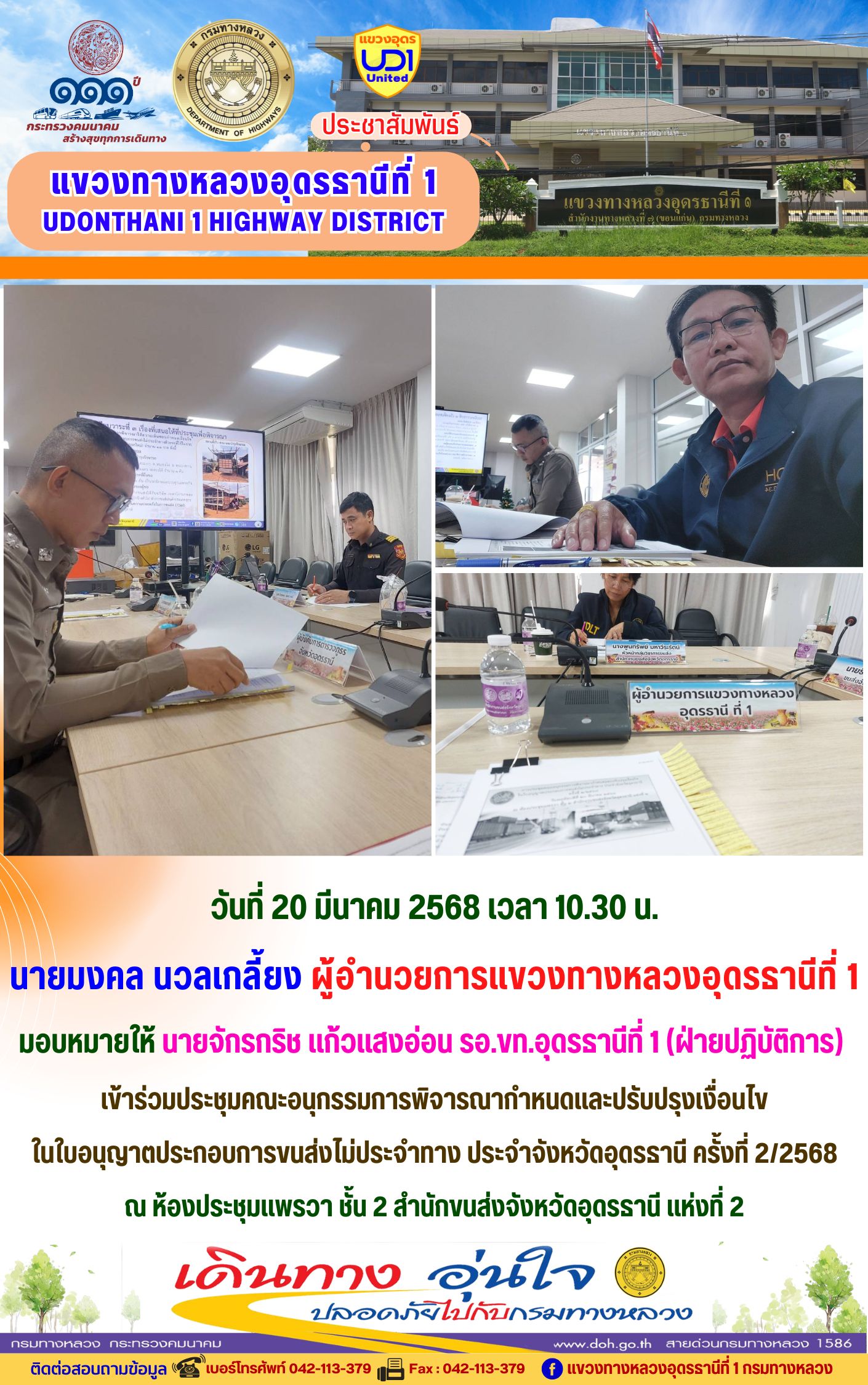 เข้าร่วมประชุมคณะอนุกรรมการพิจารณากำหนดและปรับปรุงเงื่อนไข ในใบอนุญาตประกอบการขนส่งไม่ประจำทาง ประจำจังหวัดอุดรธานี ครั้งที่ 2/2568