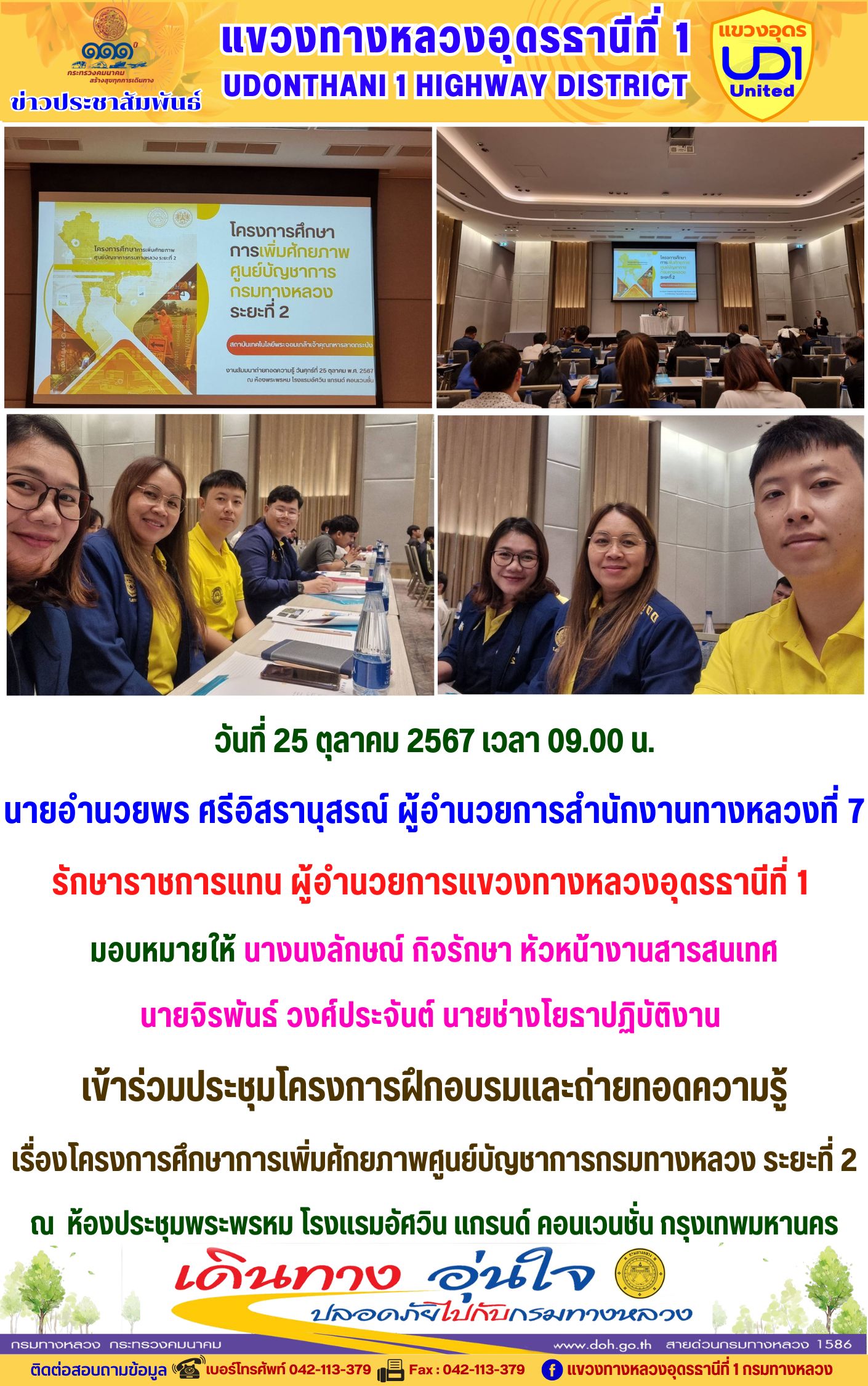 เข้าร่วมประชุมโครงการฝึกอบรมและถ่ายทอดความรู้ เรื่องโครงการศึกษาการเพิ่มศักยภาพศูนย์บัญชาการกรมทางหลวง ระยะที่ 2