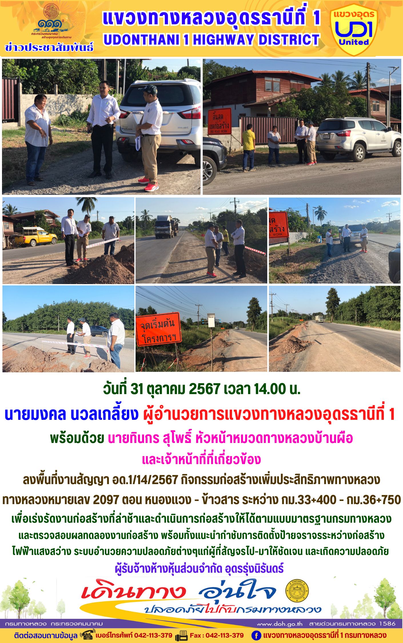 ลงพื้นที่งานสัญญา อด.1/1/2567 งานก่อสร้างทางหลวงพัฒนาพื้นที่ระดับภาค