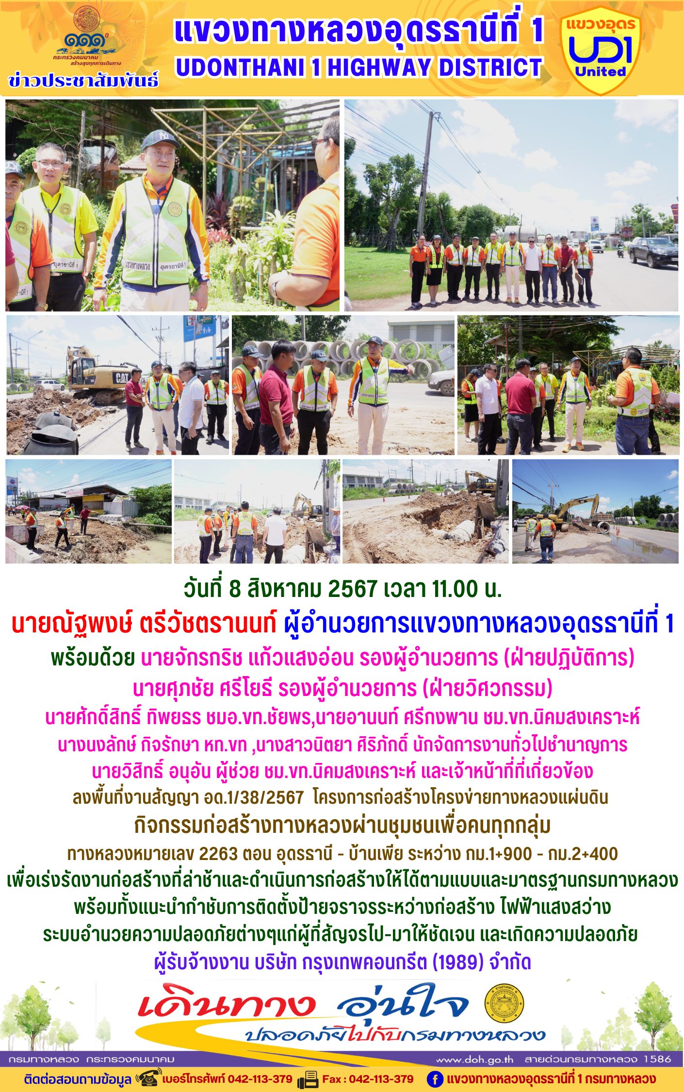 ลงพื้นที่งานสัญญา อด.1/38/2567 โครงการก่อสร้างโครงข่ายทางหลวงแผ่นดิน กิจกรรมก่อสร้างทางหลวงผ่านชุมชนเพื่อคนทุกกลุ่ม ทางหลวงหมายเลข 2263 ตอน อุดรธานี - บ้านเพีย ระหว่าง กม.1+900 - กม.2+400