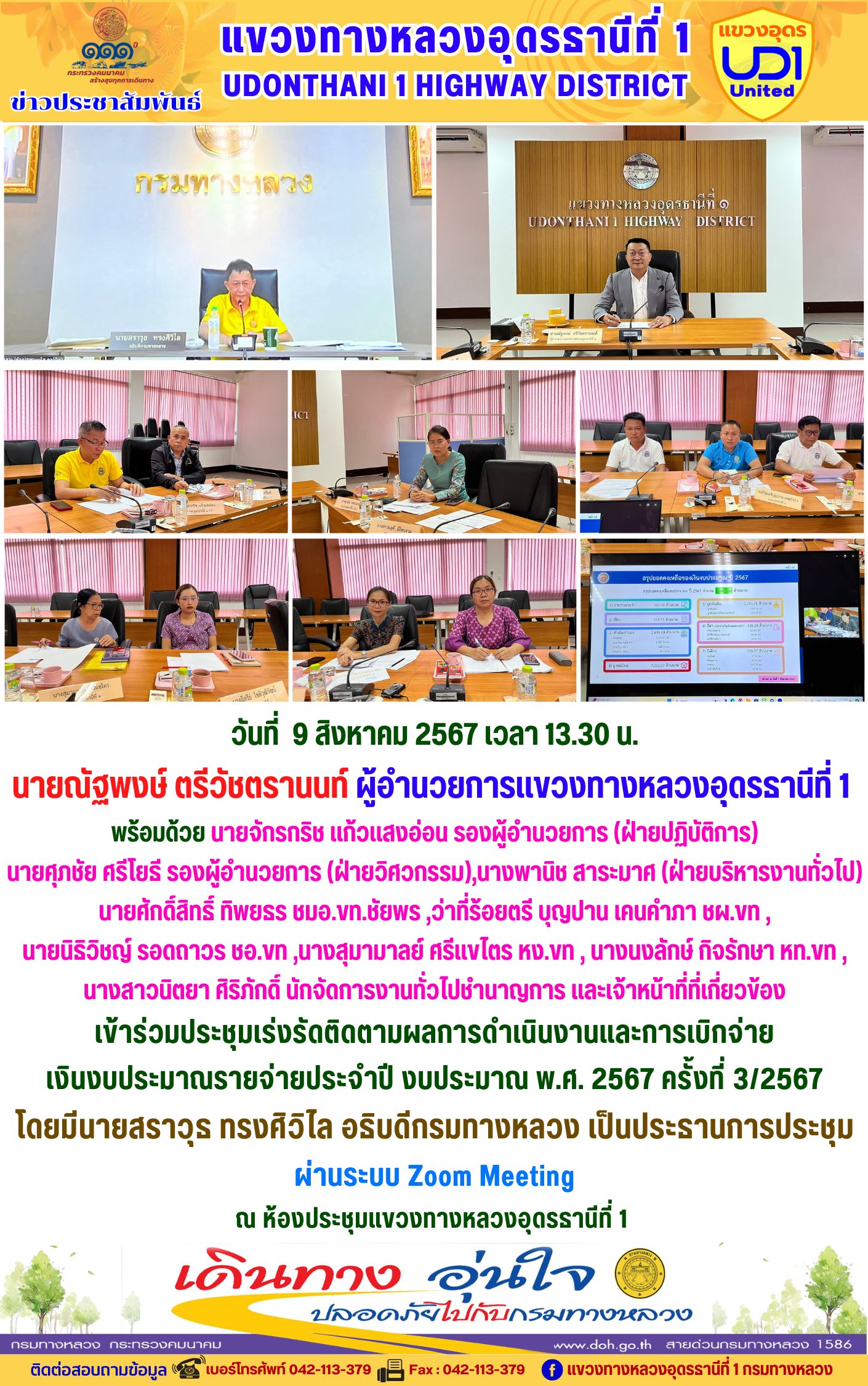 เข้าร่วมประชุมเร่งรัดติดตามผลการดำเนินงานและการเบิกจ่าย เงินงบประมาณรายจ่ายประจำปี งบประมาณ พ.ศ. 2567 ครั้งที่ 3/2567