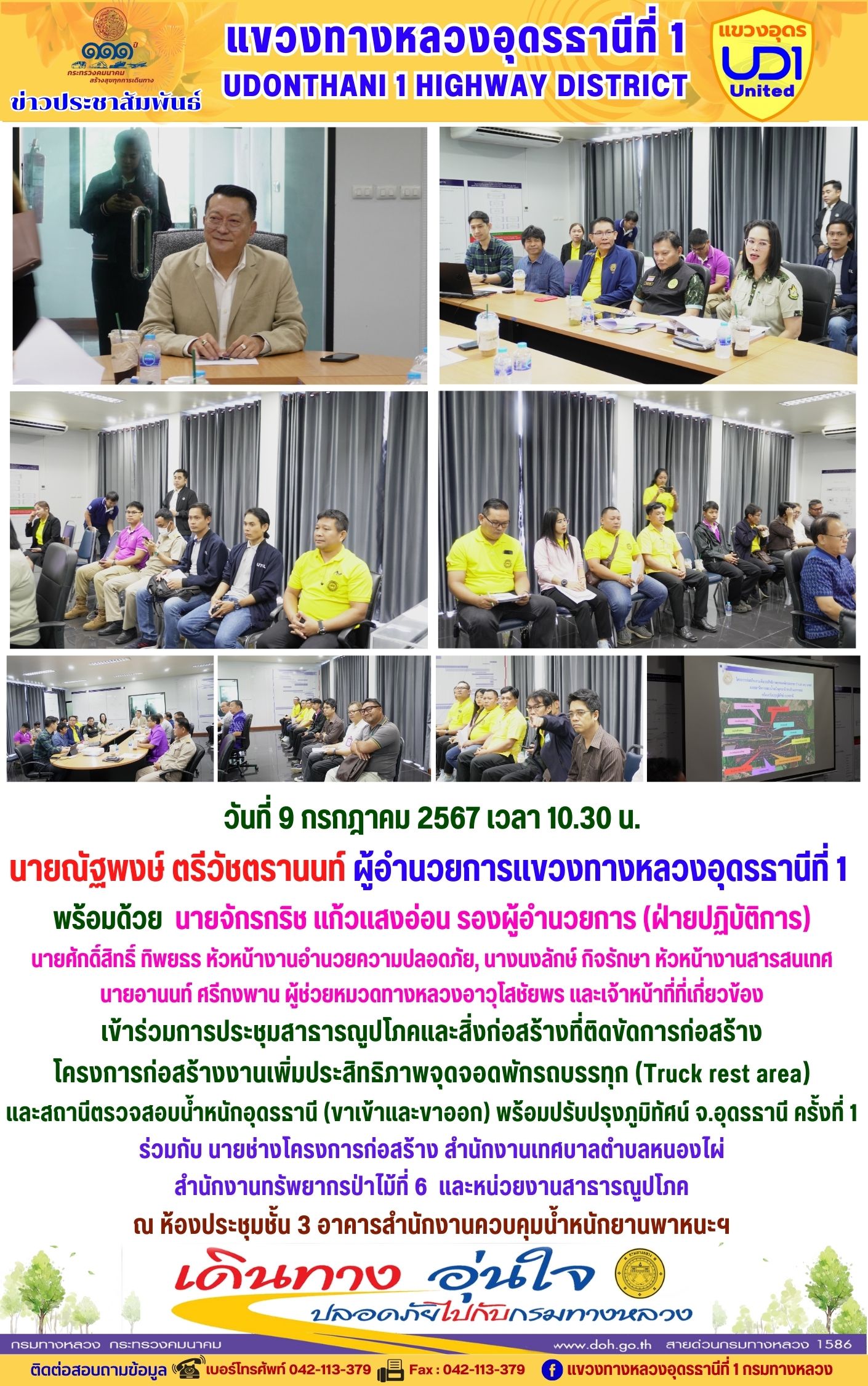 เข้าร่วมการประชุมสาธารณูปโภคและสิ่งก่อสร้างที่ติดขัดการก่อสร้าง โครงการก่อสร้างงานเพิ่มประสิทธิภาพจุดจอดพักรถบรรทุก (Truck rest area) และสถานีตรวจสอบน้ำหนักอุดรธานี (ขาเข้าและขาออก) พร้อมปรับปรุงภูมิทัศน์ จ.อุดรธานี ครั้งที่ 1