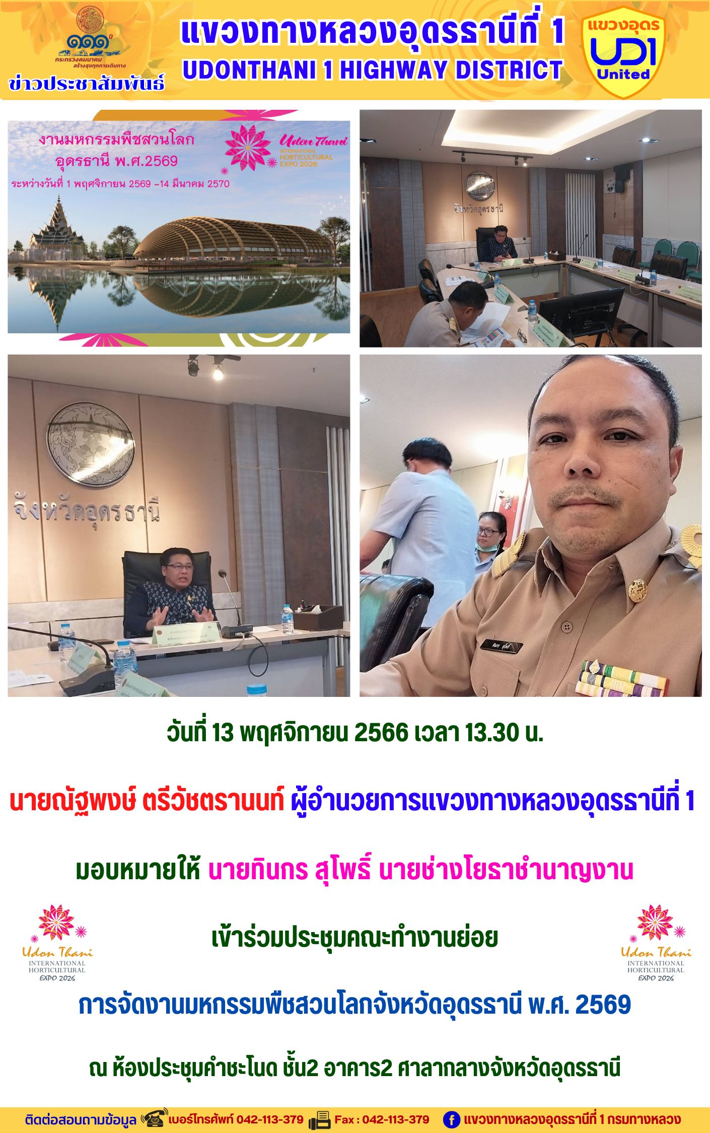ร่วมประชุมคณะทำงานการจัดงานมหกรรมพืชสวนโลก จังหวัดอุดรธานี พ.ศ. 2569 ครั้งที่ 1/2566