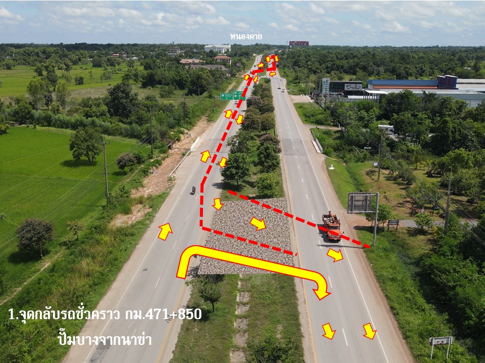 ประกาศเบี่ยงการจราจร โครงการก่อสร้างทางหลวงหมายเลข 2 สายอุดรธานี – อำเภอสระใคร (เป็นตอน ๆ) จะทำการเบี่ยงการจราจร