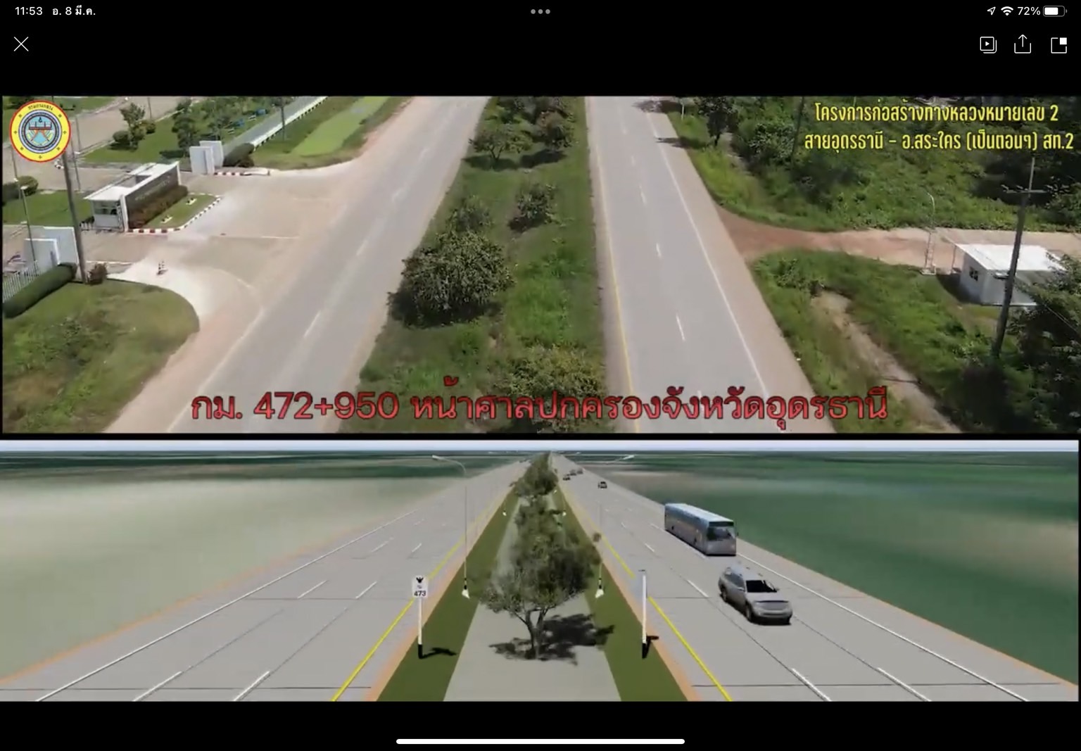 #แขวงทางหลวงอุดรธานีที่1 ประชาสัมพันธ์ #โครงการก่อสร้างสายอุดร-สระใคร ภาพเสมือนจริง 3D กับภาพจริงก่อนดำเนินงาน