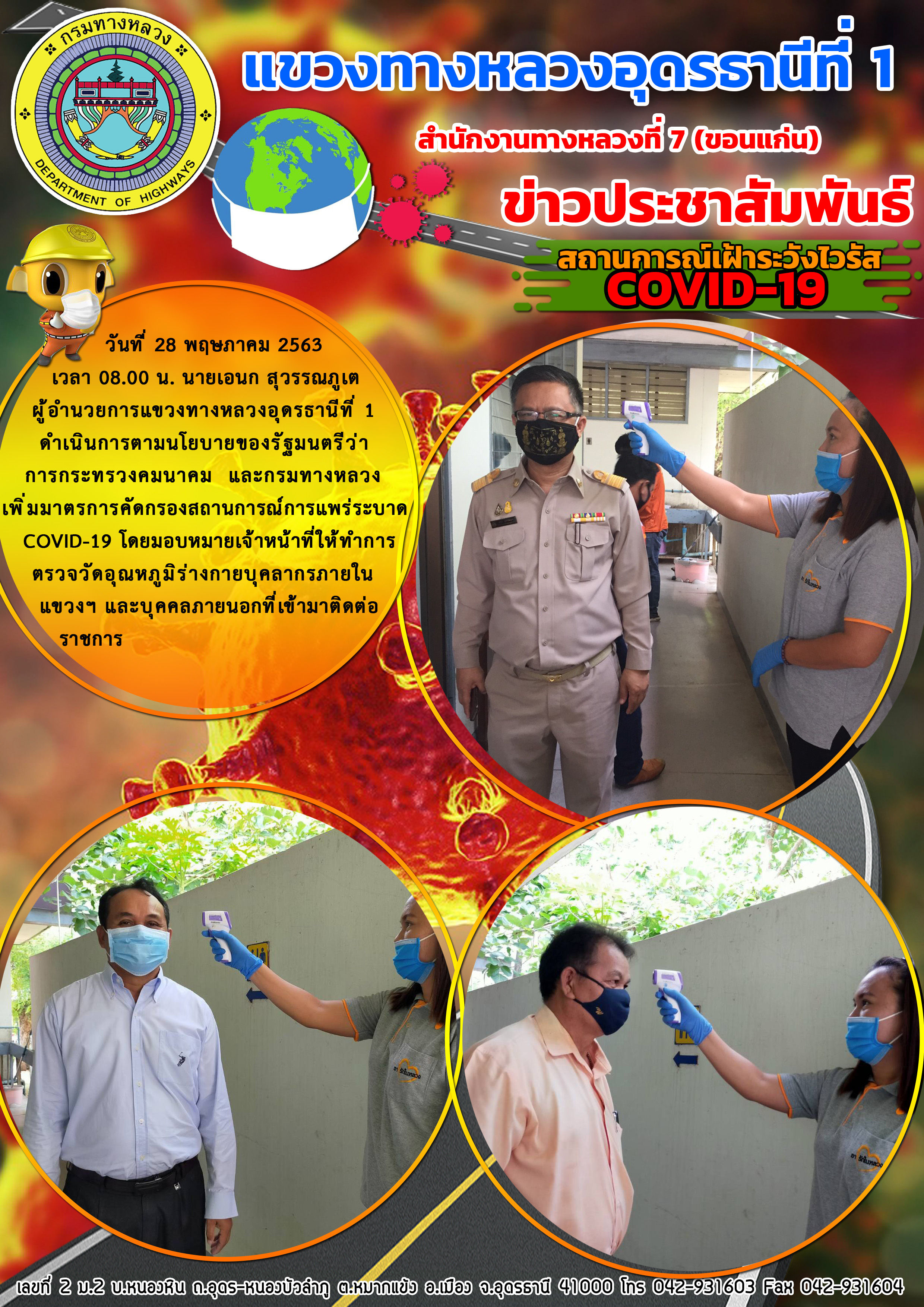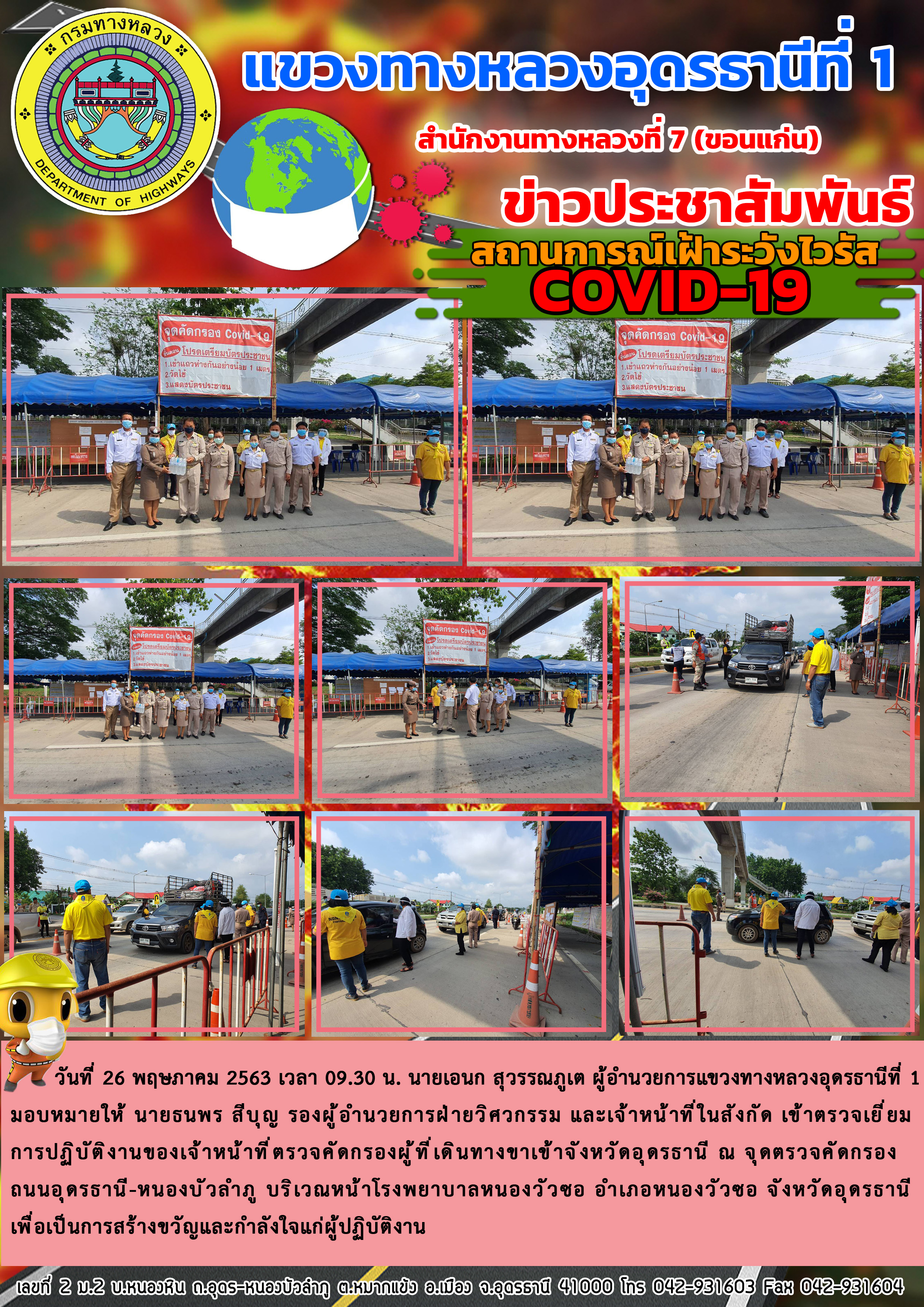 ตรวจเยี่ยม การปฏิบัติงานของเจ้าหน้าที่ตรวจคัดกรองผู้ที่เดินทางขาเข้าจังหวัดอุดรธานี