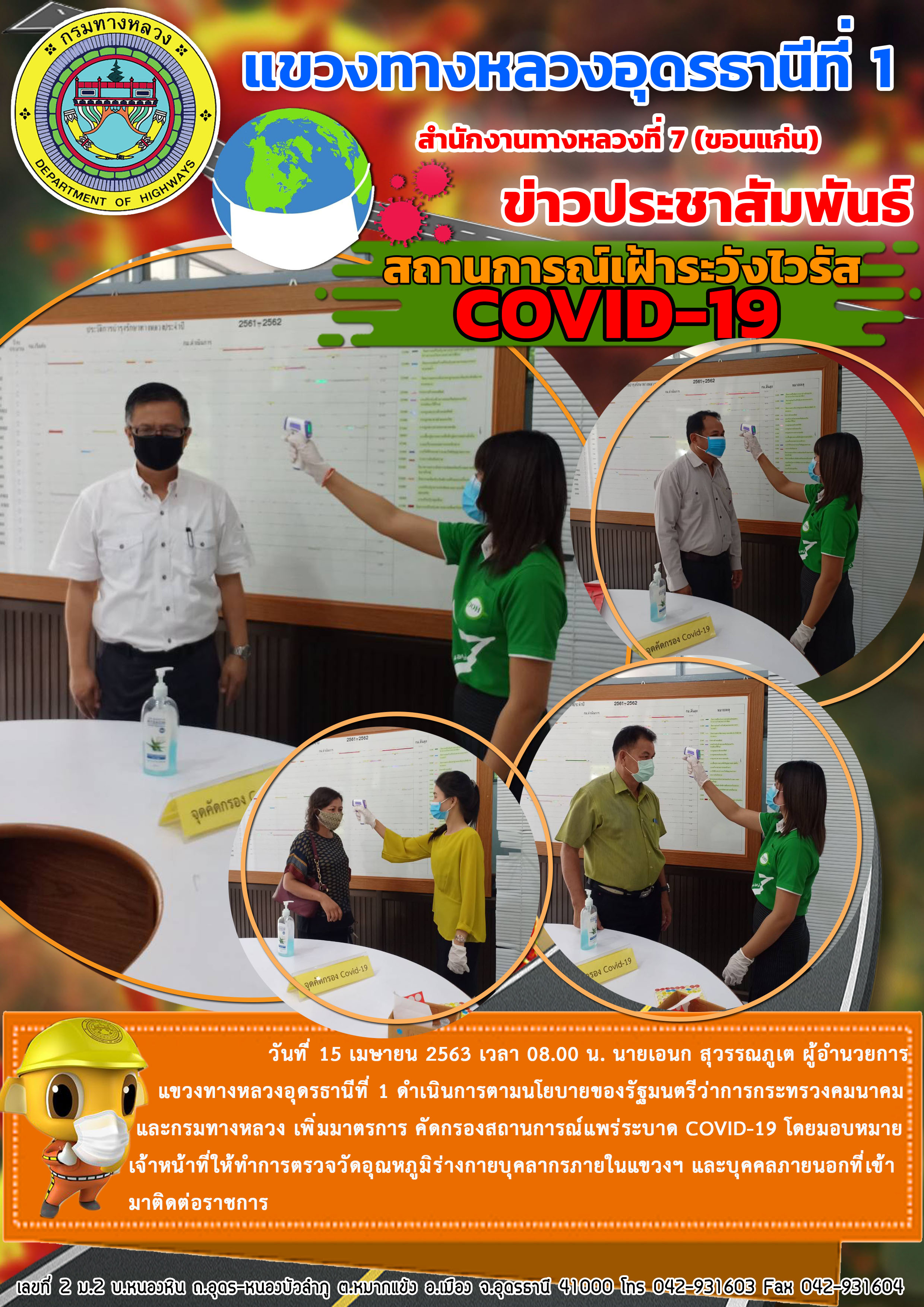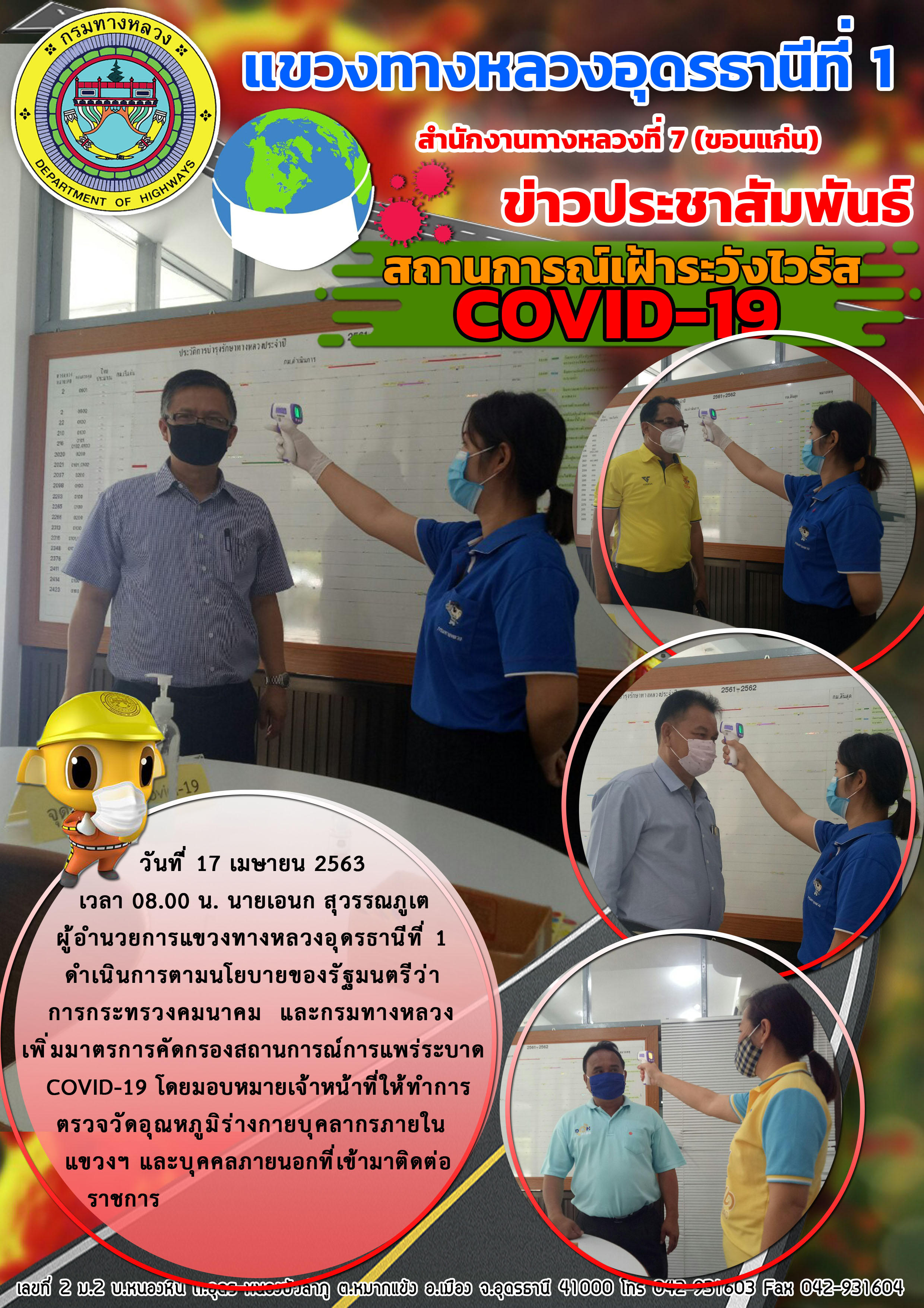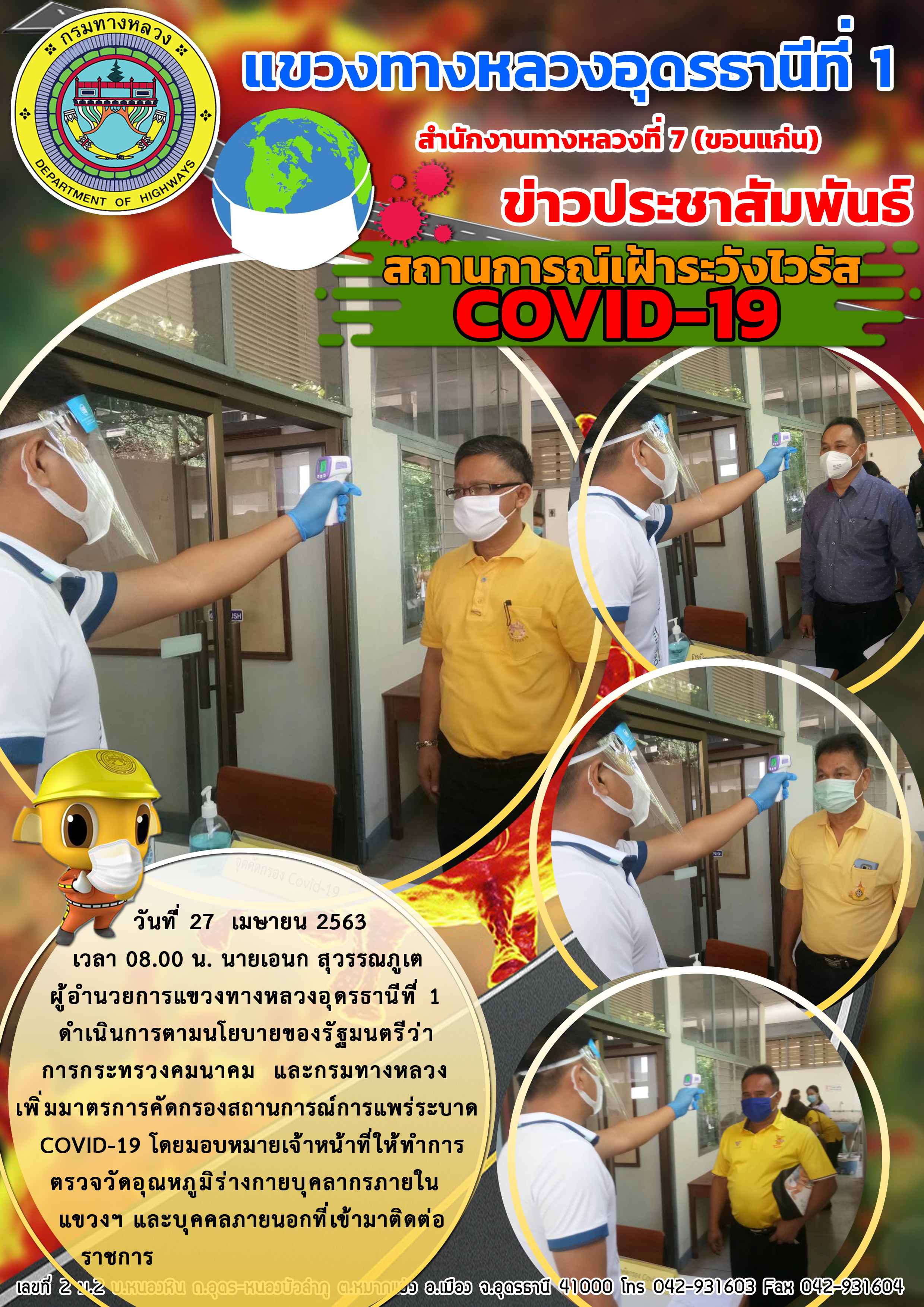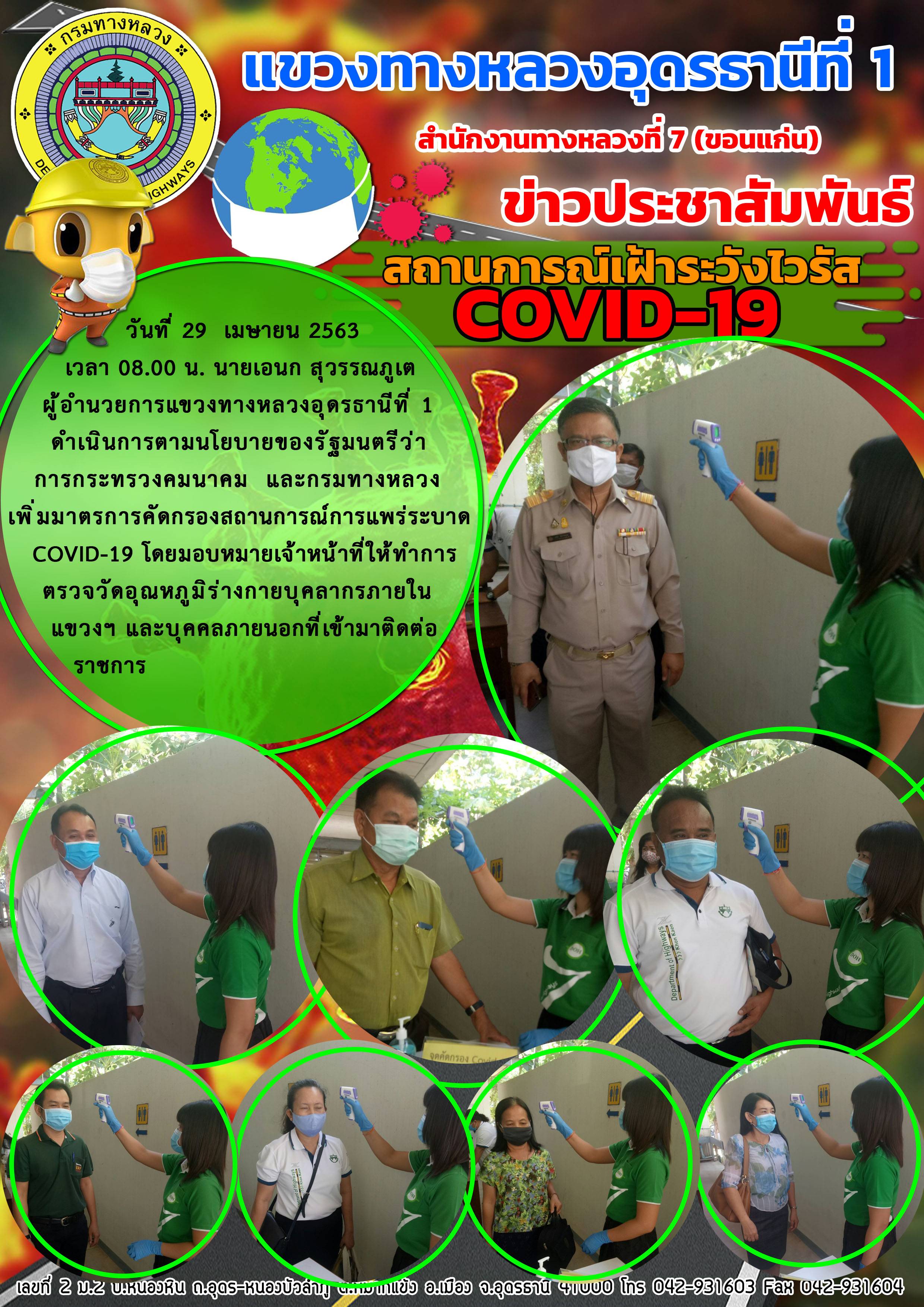ตรวจเยี่ยม การปฏิบัติงานของเจ้าหน้าที่ตรวจคัดกรองผู้ที่เดินทางขาเข้าจังหวัดอุดรธานี |
