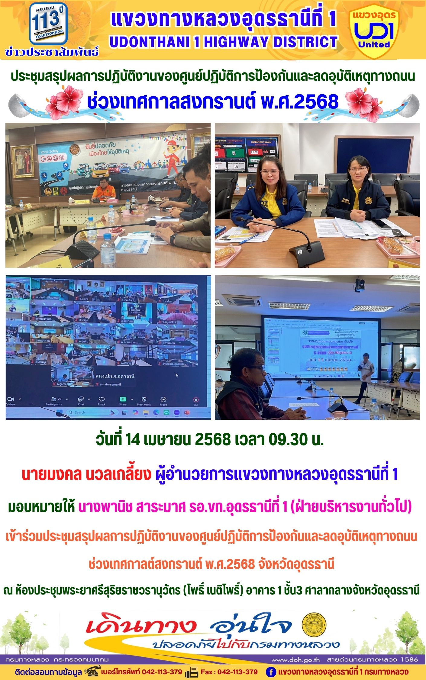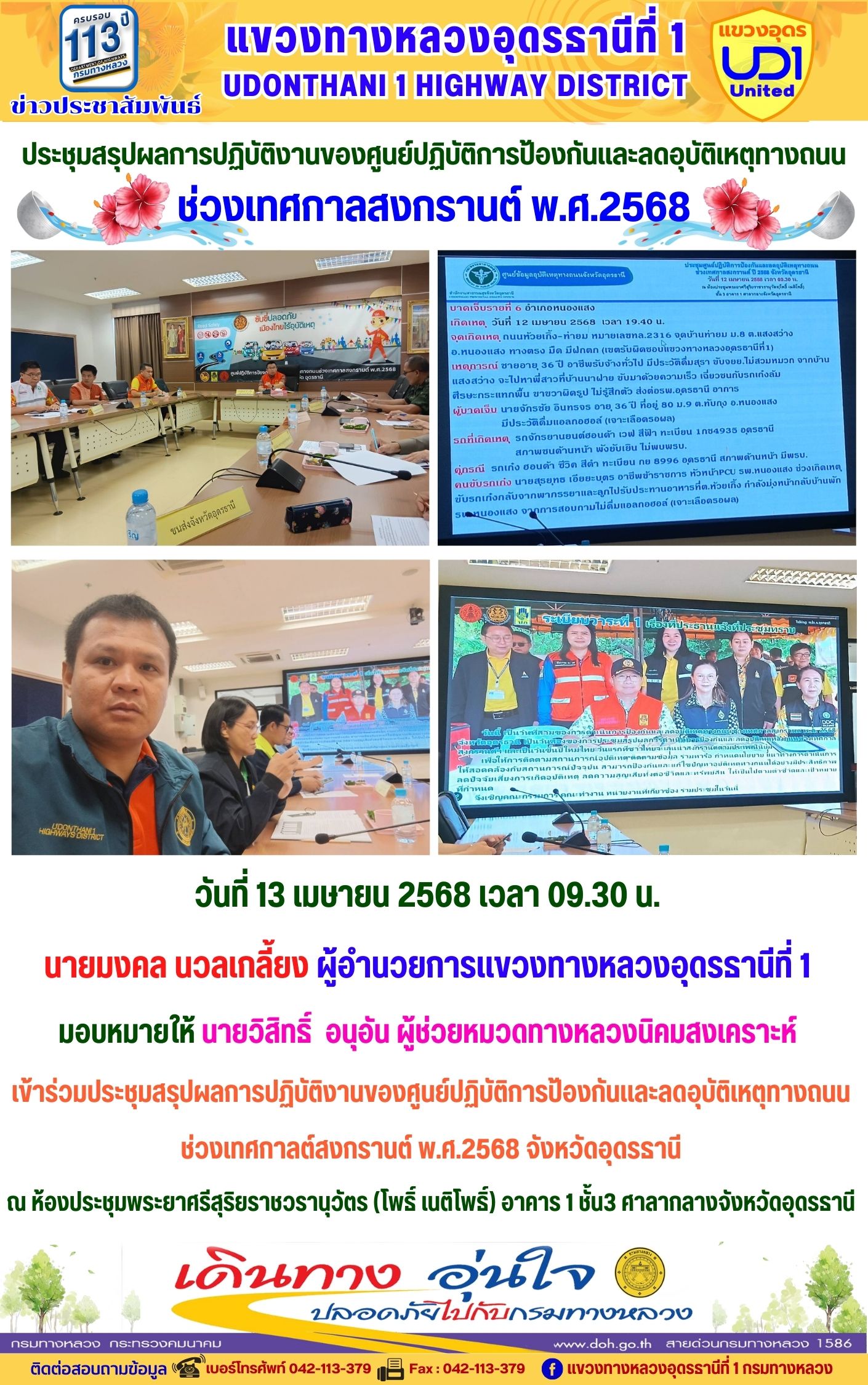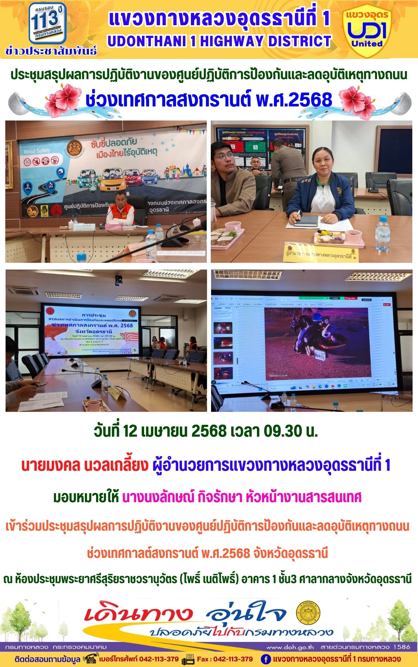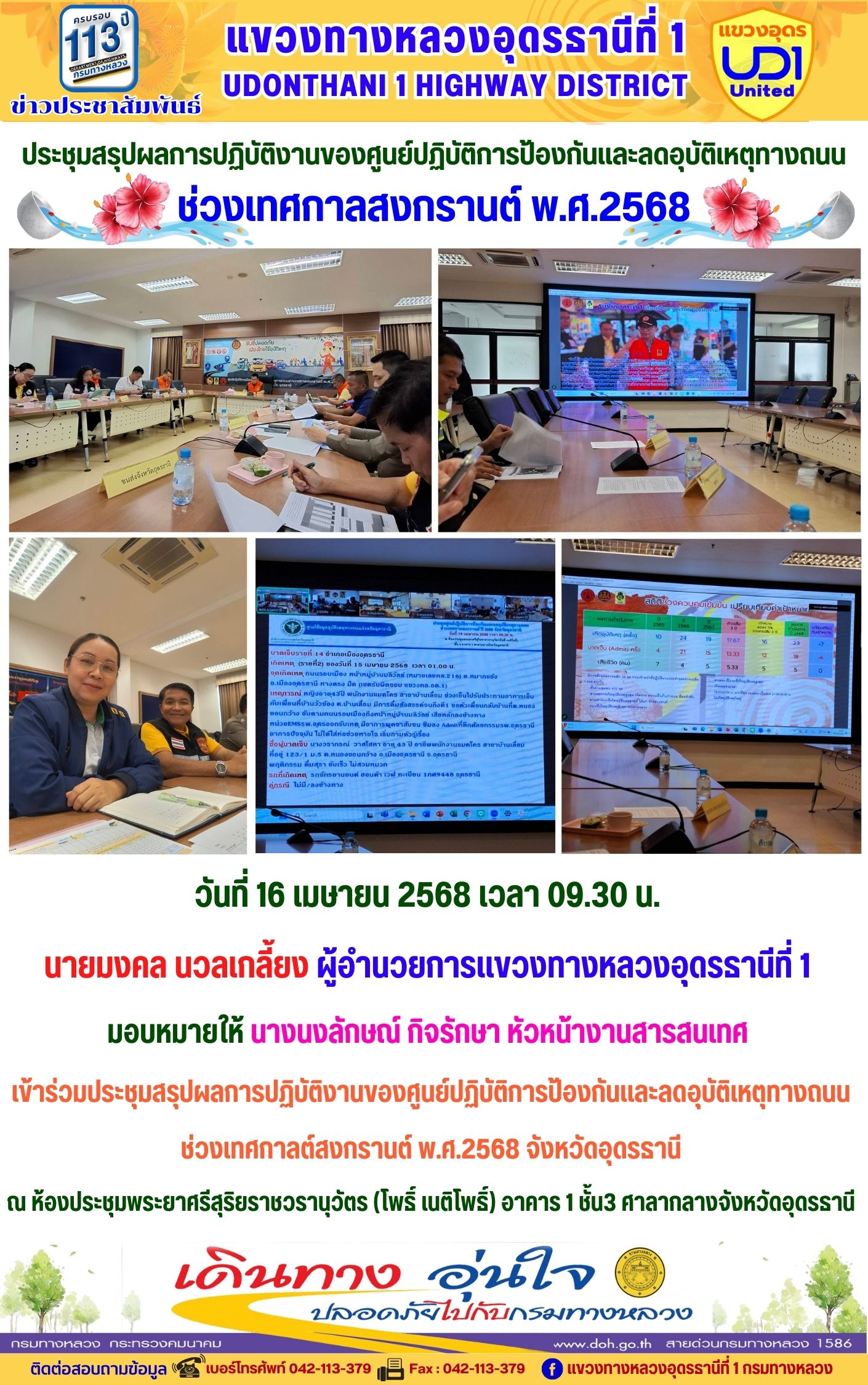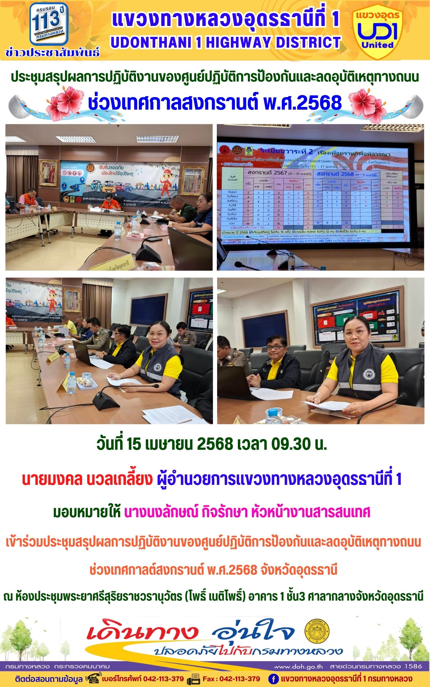 111 15/04/2568 เข้าร่วมประชุมสรุปผลการปฏิบัติงานของศูนย์ปฏิบัติการป้องกันและลดอุบัติเหตุทางถนน ช่วงเทศกาลต์สงกรานต์ พ.ศ.2568 จังหวัดอุดรธานี
