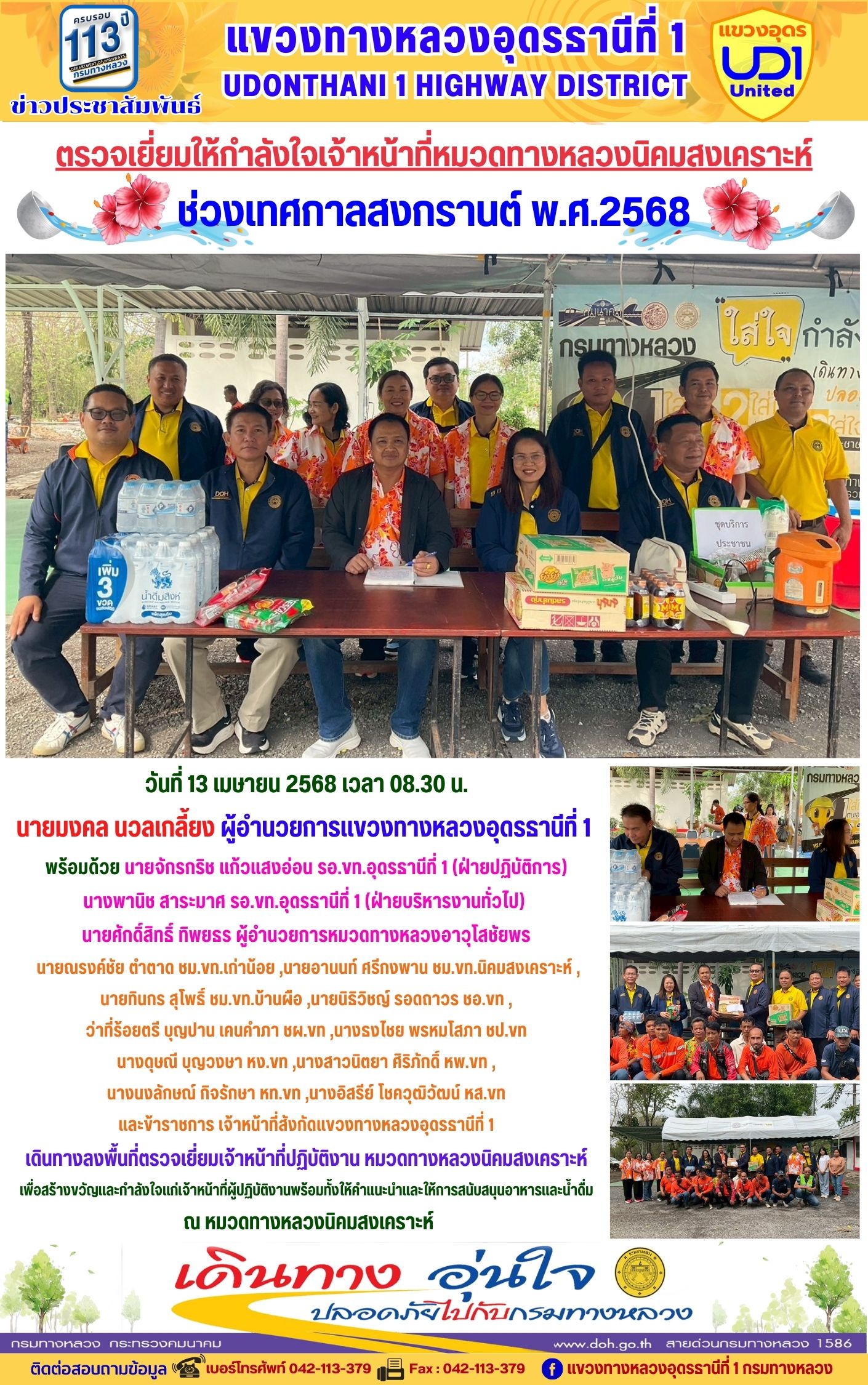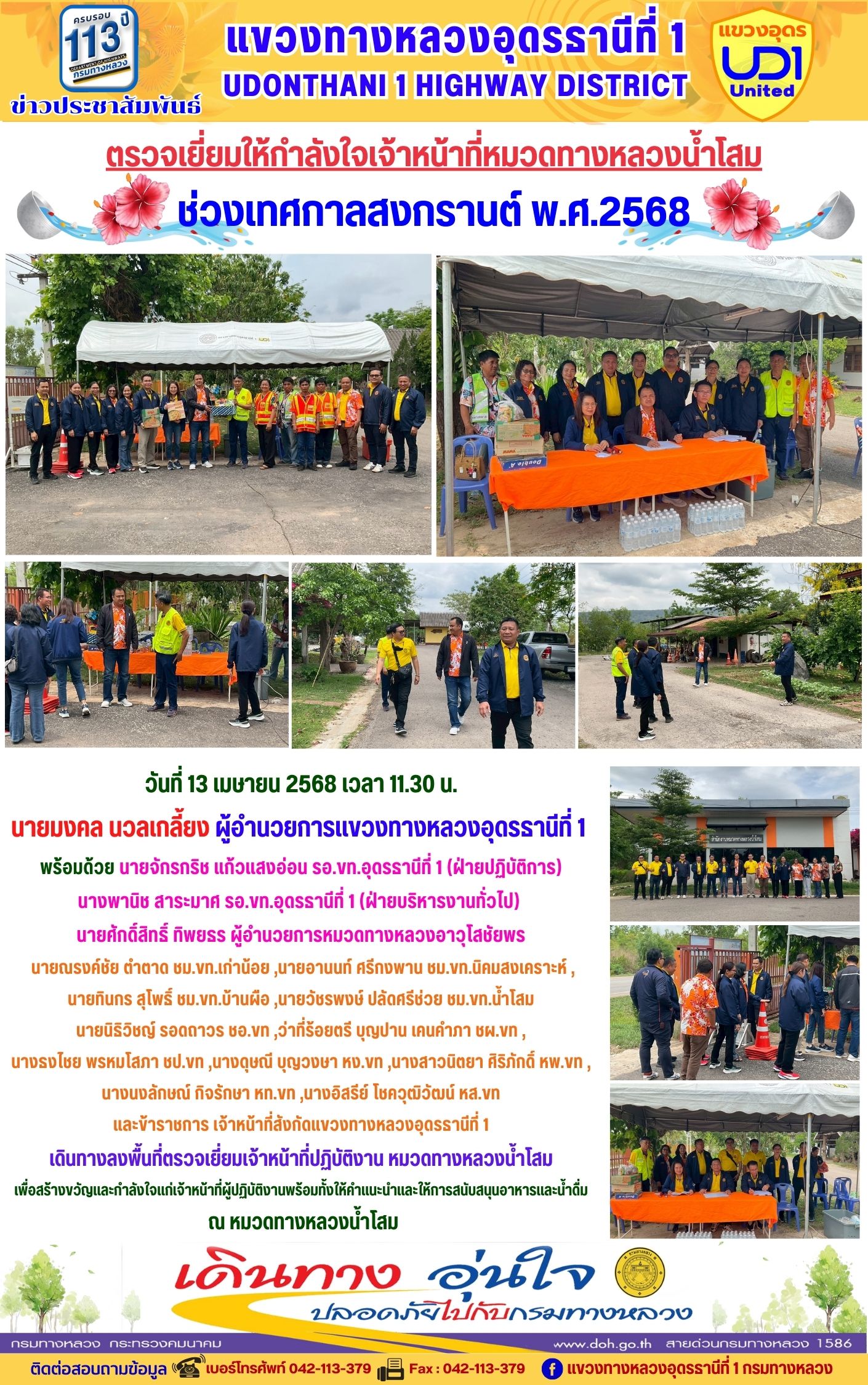 115 15/04/2568 เดินทางลงพื้นที่ตรวจเยี่ยมเจ้าหน้าที่ปฏิบัติงาน หมวดทางหลวงน้ำโสม ช่วงเทศกาลสงกรานต์ 2568
