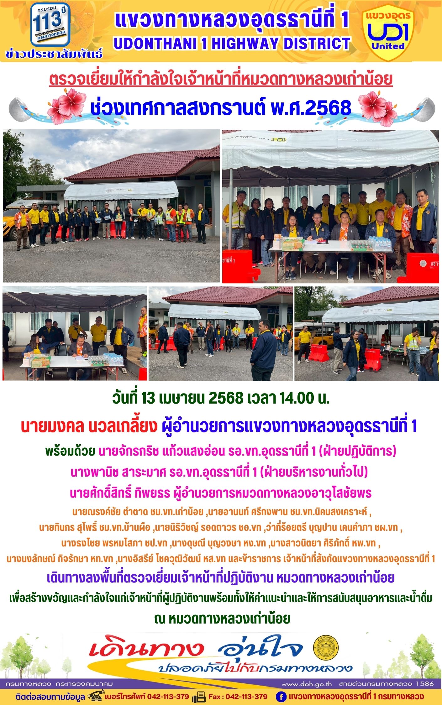 116 15/04/2568 เดินทางลงพื้นที่ตรวจเยี่ยมเจ้าหน้าที่ปฏิบัติงาน หมวดทางหลวงบ้านผือ ช่วงเทศกาลสงกรานต์ 2568