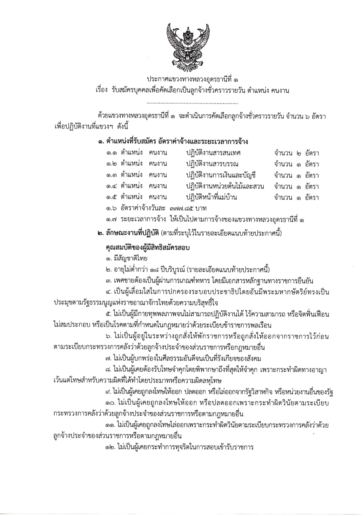 เรื่อง รับสมัครบุคคลเพื่อสอบคัดเลือกเป็นลูกจ้างชั่วคราวรายวัน