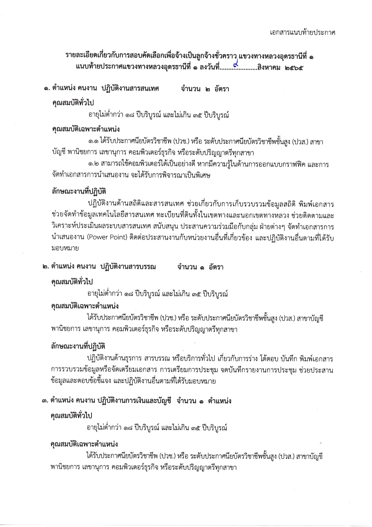 ข้อมูลประกาศรับสมัครพนักงานราชการ : เรื่อง รับสมัครบุคคลเพื่อสอบคัดเลือกเป็นลูกจ้างชั่วคราวรายวัน