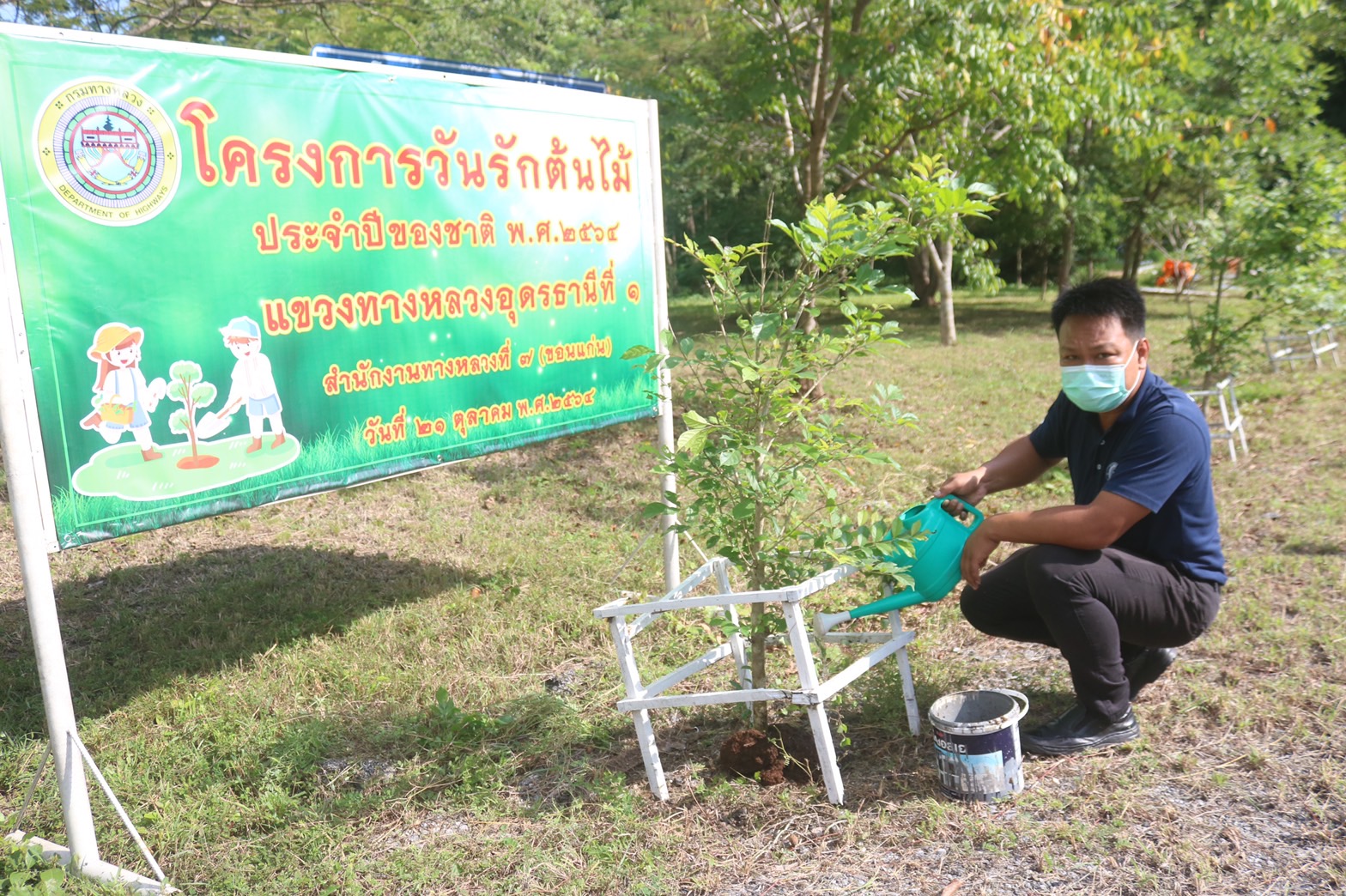 วันที่ 21 ตุลาคม 2564 เวลา 09.30 น. นายเอนก สุวรรณภูเต ผู้อำนวยการแขวงทางหลวงอุดรธานีที่ 1 พร้อมด้วยรองผู้อำนวยการ ข้าราชการ พนักงานราชการ และเจ้าหน้าที่ในสังกัดแขวงทางหลวงอุดรธานีที่ 1 ร่วมโครงการวันรักต้นไม้ประจำปีของชาติ พ.ศ.2564 โดยร่วมกันจัดกิจกรรมบำรุงรักษาต้นไม้ด้วยการพรวนดิน ใส่ปุ๋ย กำจัดวัชพืช โรค แมลง ตัดแต่งกิ่งไม้ และรดน้ำ ณ บริเวณหมวดทางหลวงนิคมสงเคราะห์ ทางหลวงหมายเลข 210 ตอน อุดรธานี-นิคมเชียงพิณ ที่ กม.8+417