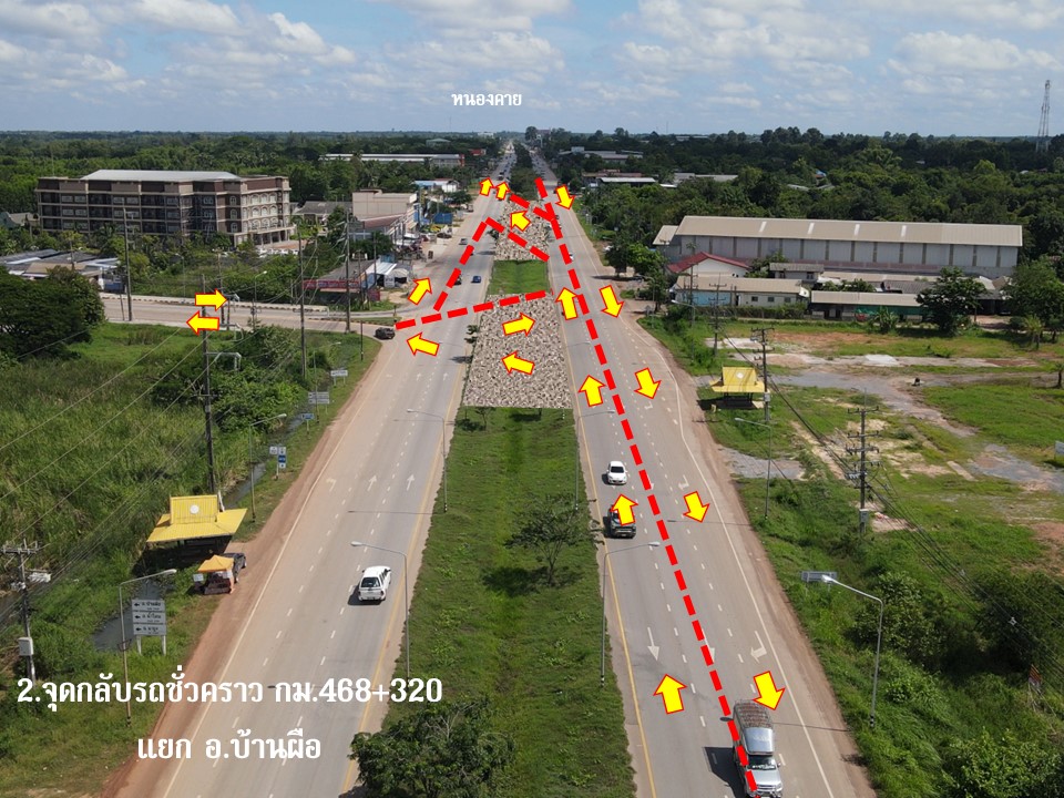 กำหนดให้รถวิ่งสวนทางกันในทิศทางขาเข้าจังหวัดอุดรธานี
