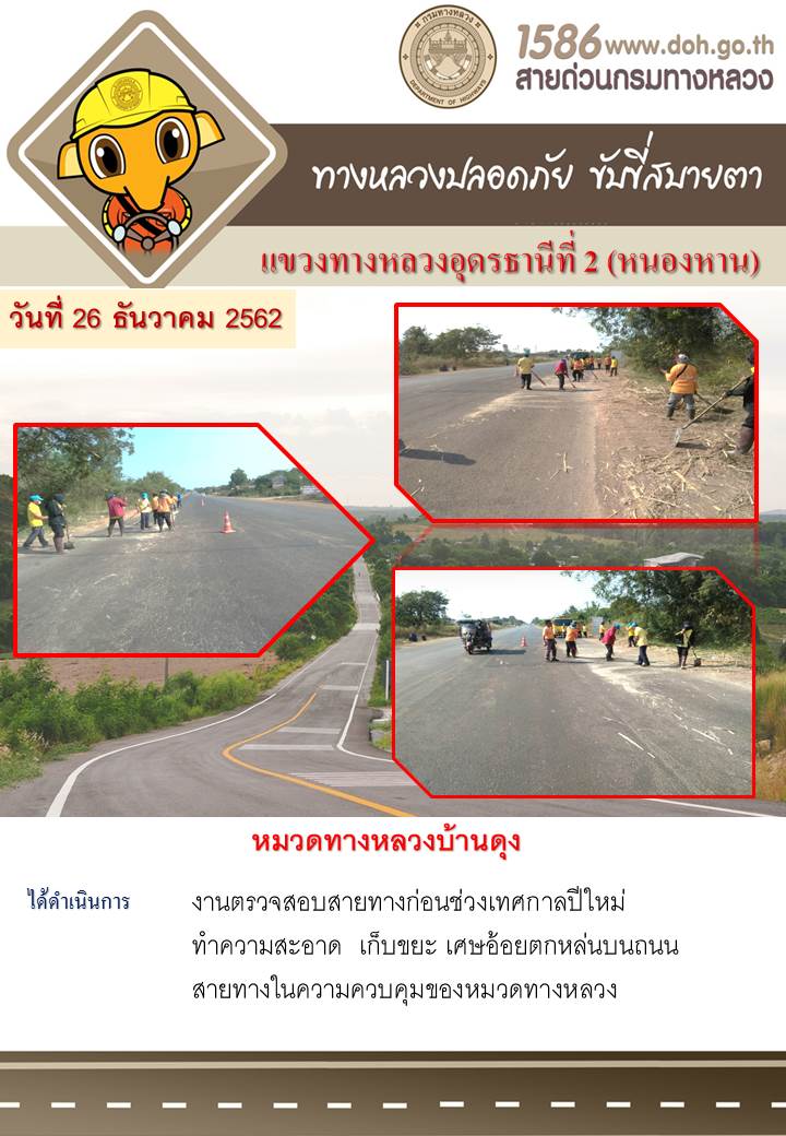 กิจกรรมเตียมความพร้อม ช่วงเทศกาลปีใหม่ 2563 หมวดทางหลวงในสังกัด เตรียมความพร้อมทางหลวงในความรับผิดชอบเพื่อให้ประชาชนสัญจรไปมา ด้วยความสะดวก ปลอดภัย อุ่นใจกับกรมทางหลวง
